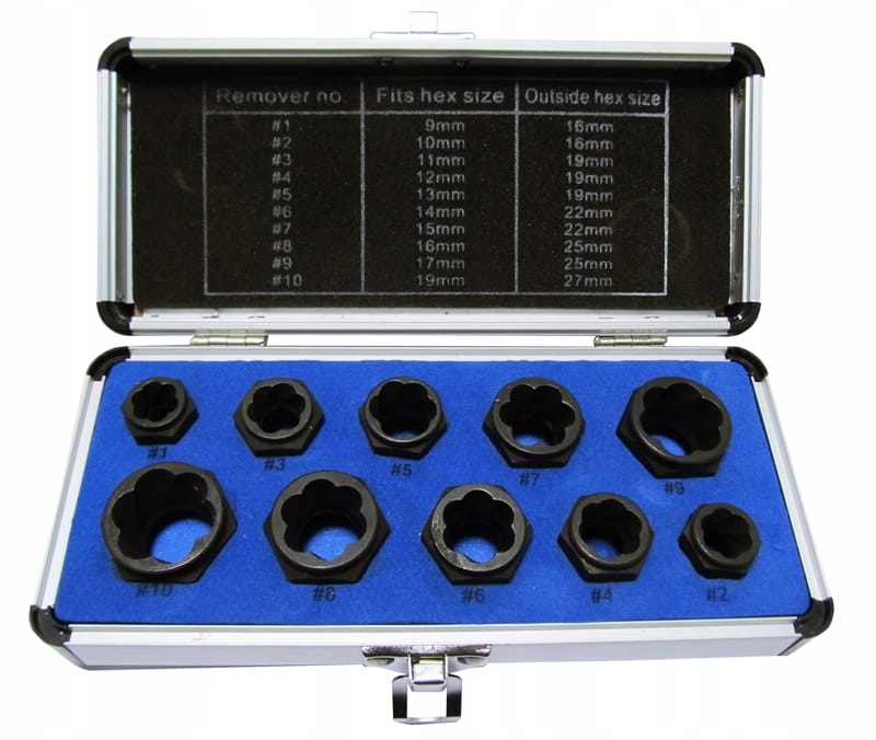 НАБОР НАСАДОК ДЛЯ ОБРАБОТАННЫХ ГАЙОК 10 ШТ. ПОПУЛЯРНЫЕ РАЗМЕРЫ