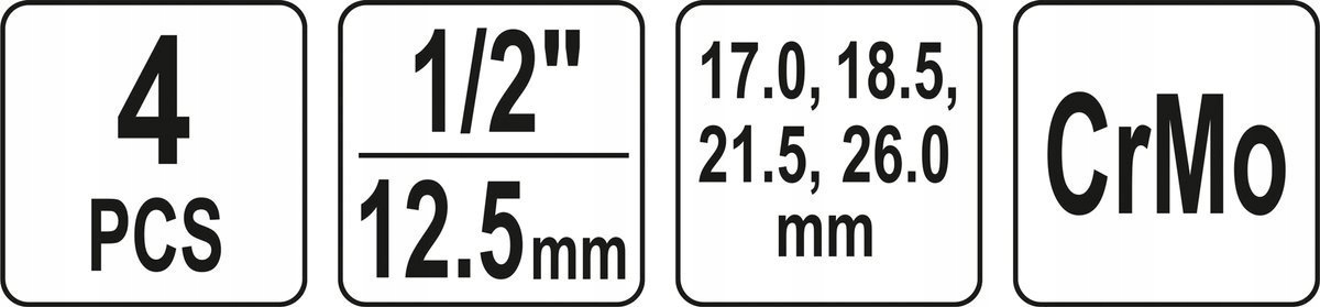 НАБОР НАСАДОК ДЛЯ ОТВЕРТКИ КРЕПЛИТЕЛЬНЫХ ВИНТОВ 4 ШТ. 1/2 дюйма