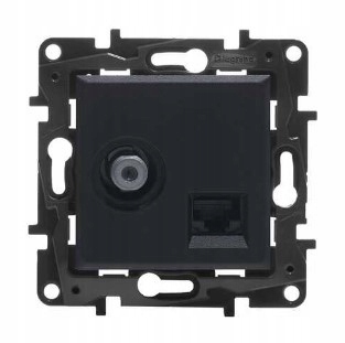 Розетка для ТВ + Интернет Legrand Niloe Step 863577 антенна типа «F» + компьютер RJ45 кат.6 UTP черная