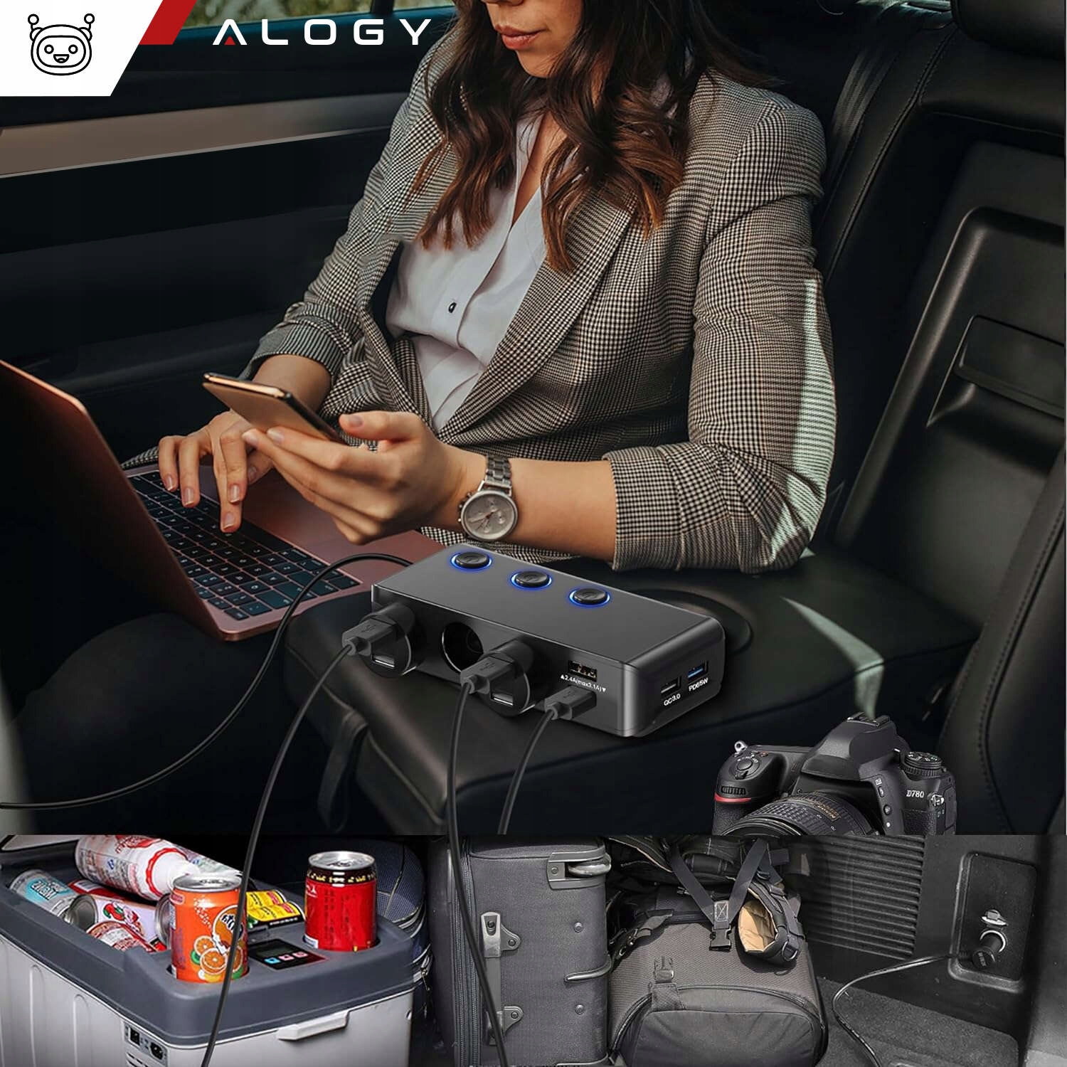✅Адаптер для автомобильного прикуривателя Alogy представляет собой изделие исключительного качества. Он позволяет разделить питание одного гнезда прикуривателя на : 3 розетки USB-A 2,4 А, розетка USB-A QC 3.0 и три гнезда прикуривателя.