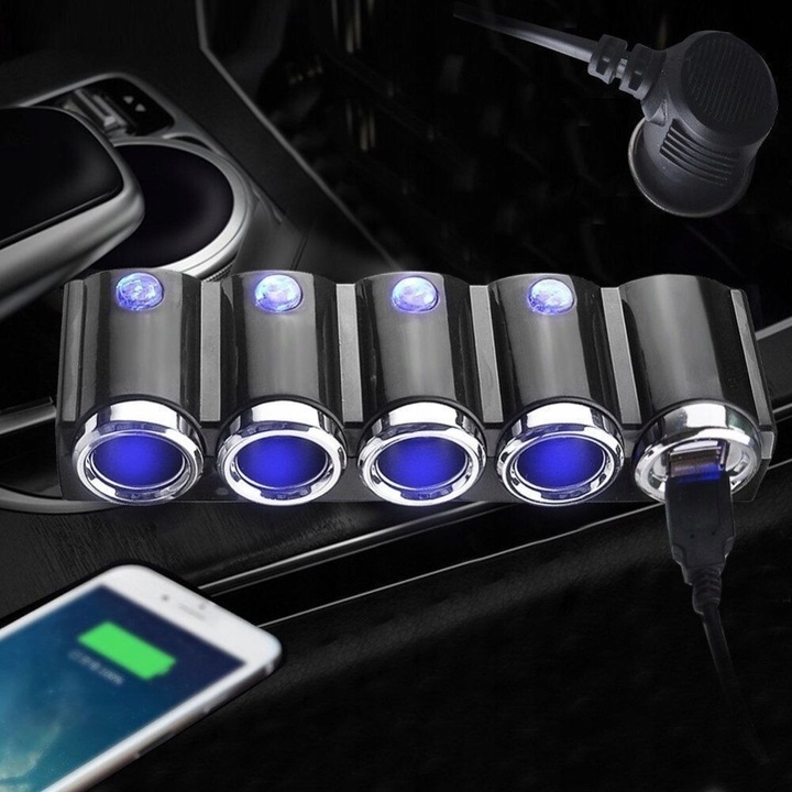 Высочайшее качество - разветвитель прикуривателя и автомобильное зарядное устройство с быстрой зарядкой. Адаптер позволяет разделить питание одной розетки прикуривателя на 4 розетки и имеет два USB-разъема с быстрой зарядкой.