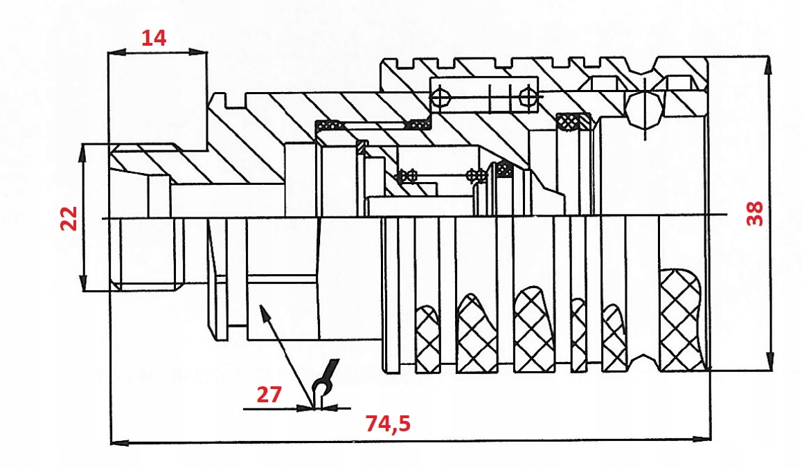 Гніздо для швидкого з'єднання ЗОВНІШНЯ РІЗЬБА - M22X1.5 15L EURO