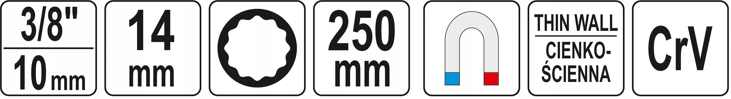 РОЗЕТКА 14 ММ, УДЛИННАЯ, 250 мм, ПРИВОД 3/8"
