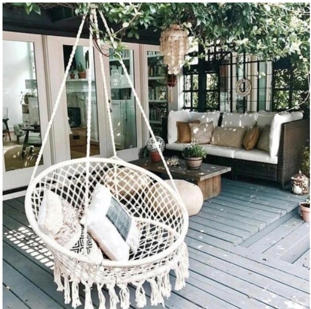 Качели с металлическим кольцом можно повесить дома, в беседке и в саду.