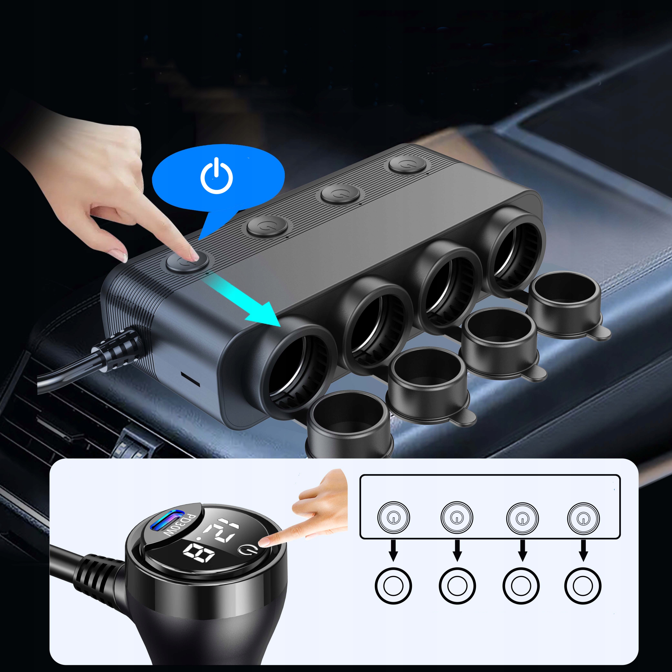 6️⃣ Многопортовый: Благодаря 4 гнездам прикуривателя можно подключать дополнительные устройства, например автомобильную навигацию, портативный холодильник или автомобильный пылесос. чище.
