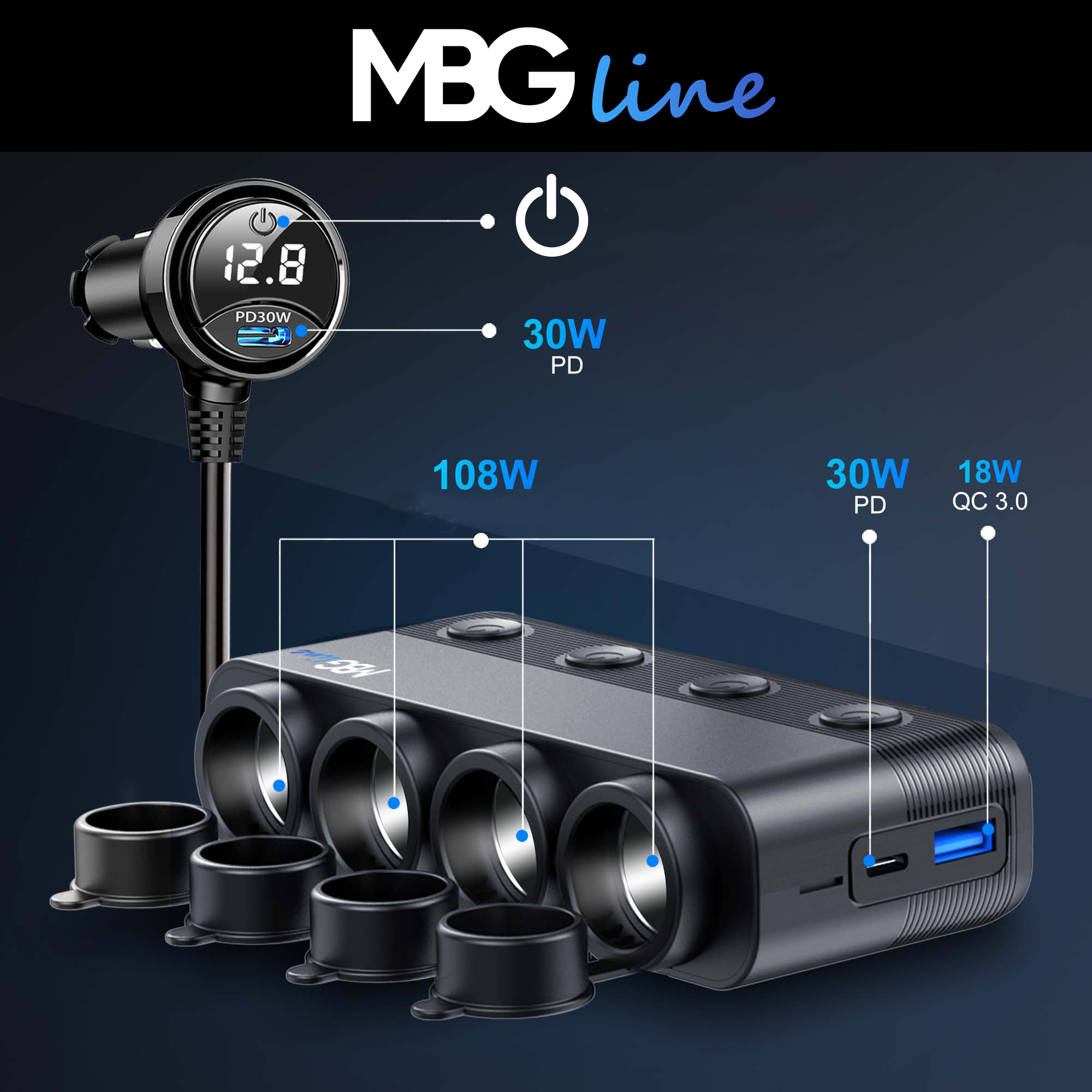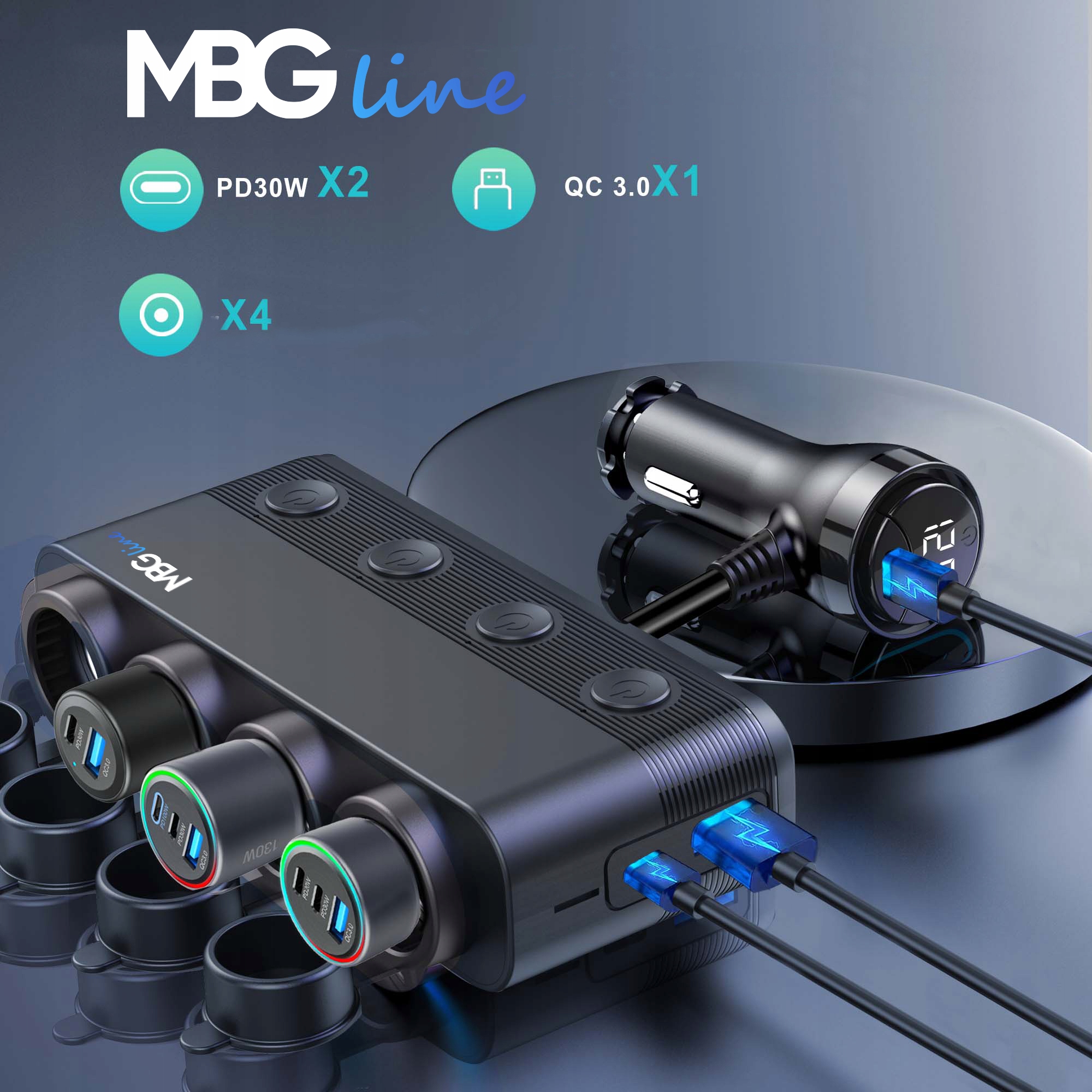 ☑ Новинка - зарядное устройство USB с разветвителем прикуривателя - каждое гнездо прикуривателя может быть включил отдельно, 1 порт USB QC3.0 + 2 порта USB TYPE-C PD30W в мусор!