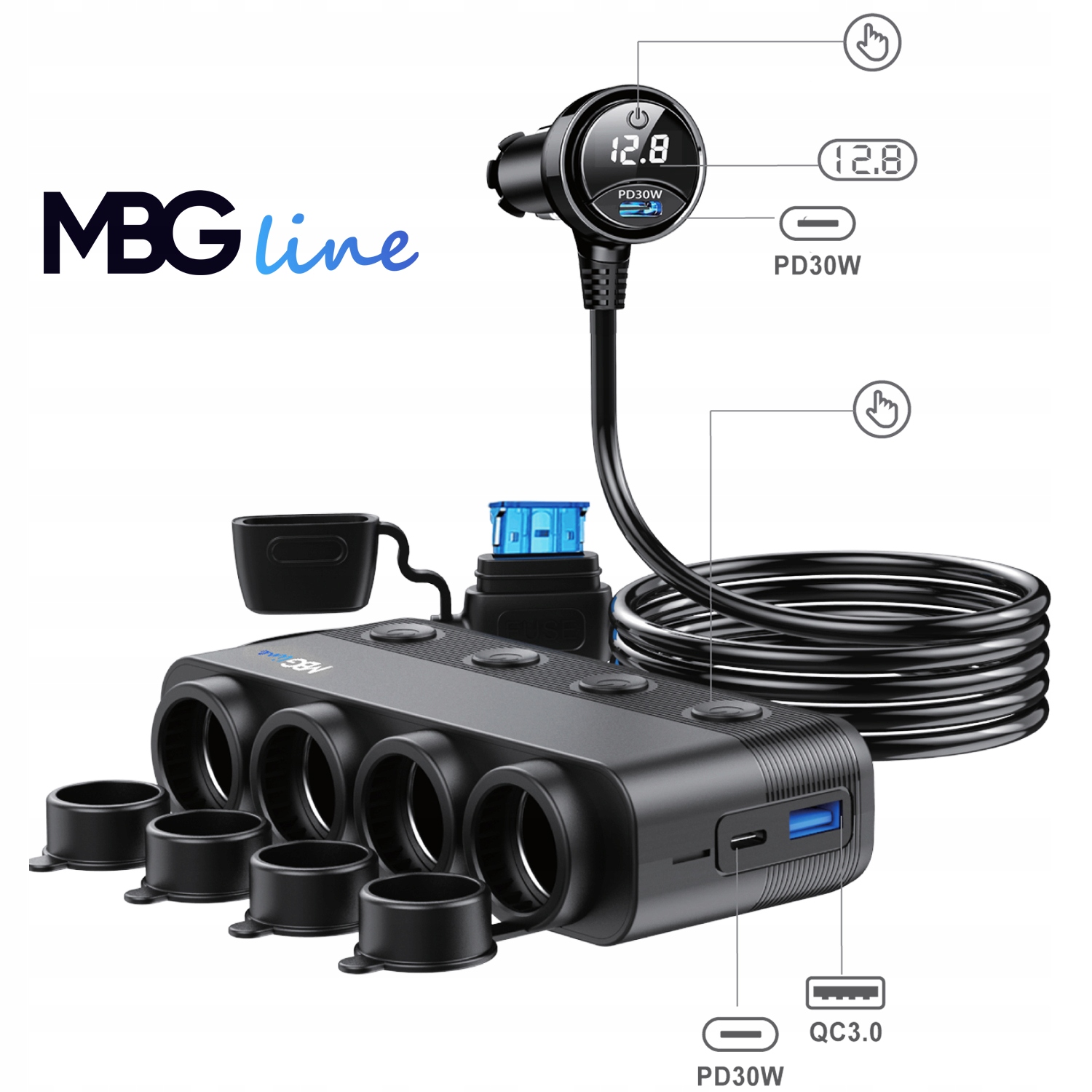 ☑ СОВРЕМЕННЫЙ РАЗДЕЛИТЕЛЬ ПРИЖИГАЛИ 1X QC3.0 2X USB TYPE C PD 30 Вт 4X РАЗДЕЛИТЕЛЬ ПРИЖИГАЛИ ВОЛЬТМЕТР СМЕННЫЙ ПРЕДОХРАНИТЕЛЬ - МАКС. 216 Вт