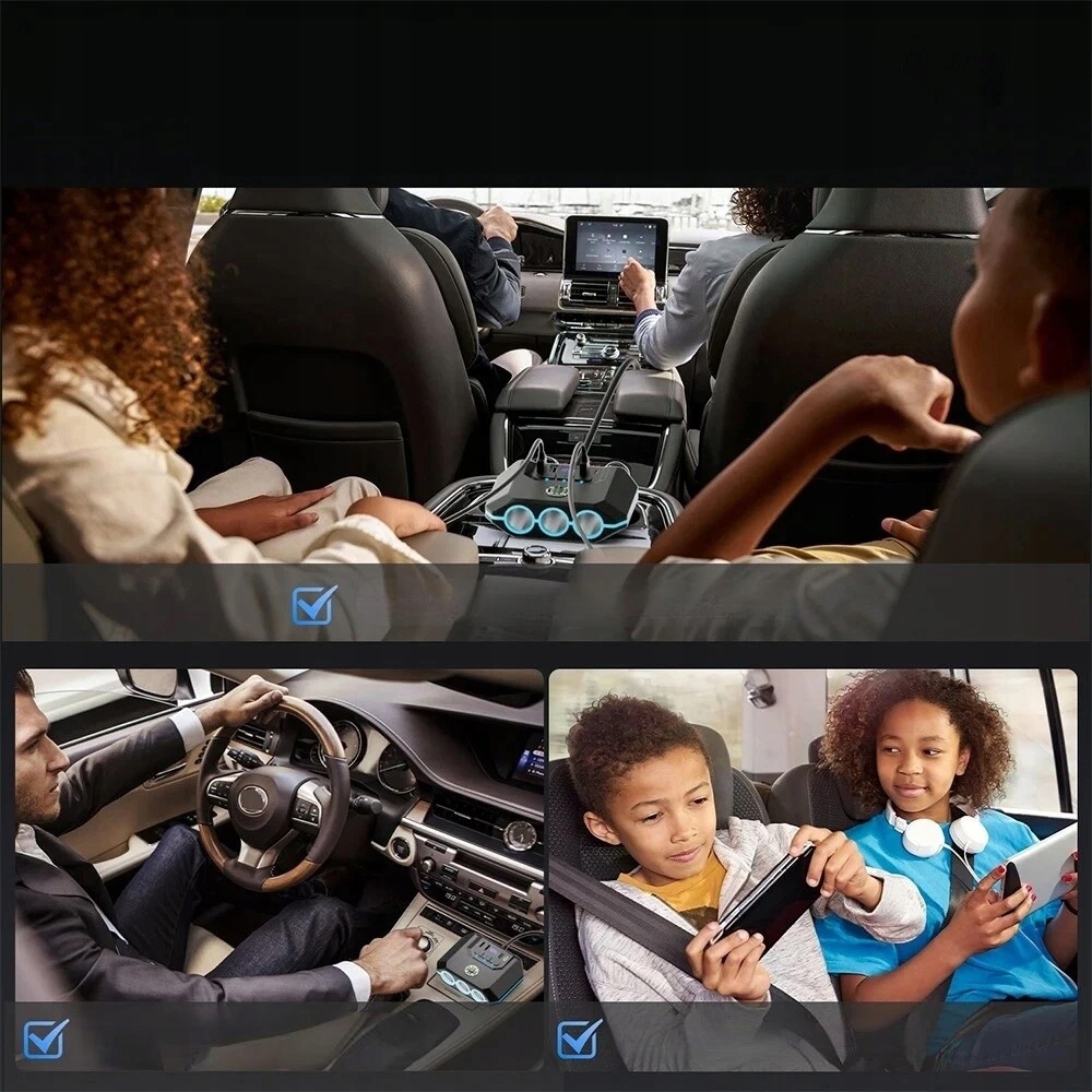 1. Адаптер для автомобильного прикуривателя 7 в 1, зарядное устройство для автомобильного прикуривателя с 4 USB-портами для зарядки и 3 гнездами прикуривателя общей мощностью 120 Вт.