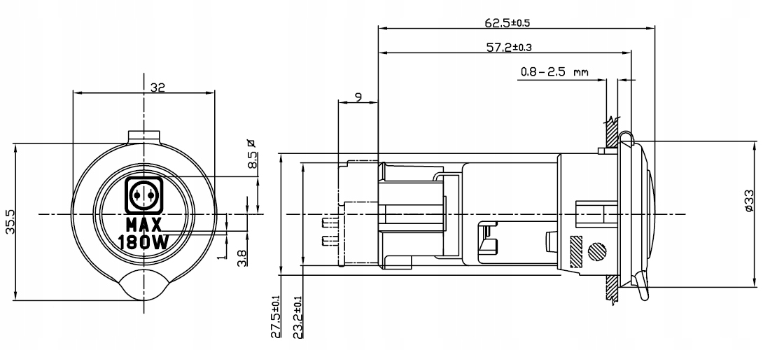Розетка совместима со всеми стандартными вилками «автомобильного прикуривателя», используемыми, например: