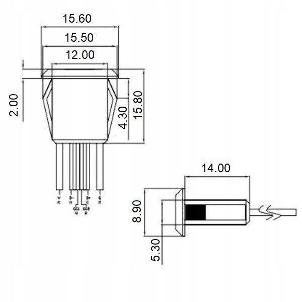 6-контактный USB-кабель с одной стороны заканчивается разъемом USB-C, установленным на защелкивающемся корпусе, а с другой стороны разъемом с шагом 2,00 мм.