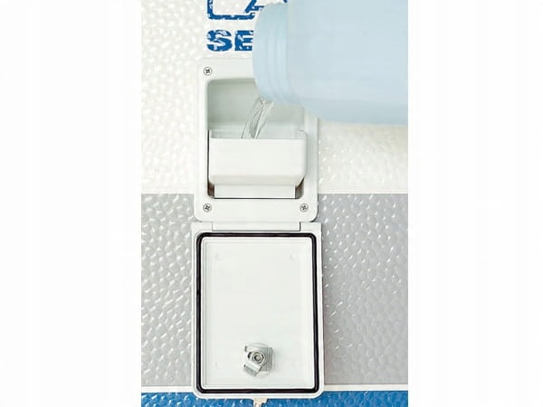 Наполнитель воды от известной компании Carysan можно установить как в фургон, так и в кемпер. Входное отверстие оснащено встроенной воронкой, позволяющей легко наливать воду. После открытия раструба воронку необходимо вручную поставить в правильное положение, чтобы можно было налить воду. В комплекте внутренняя рама, монтажный шаблон и винты.
