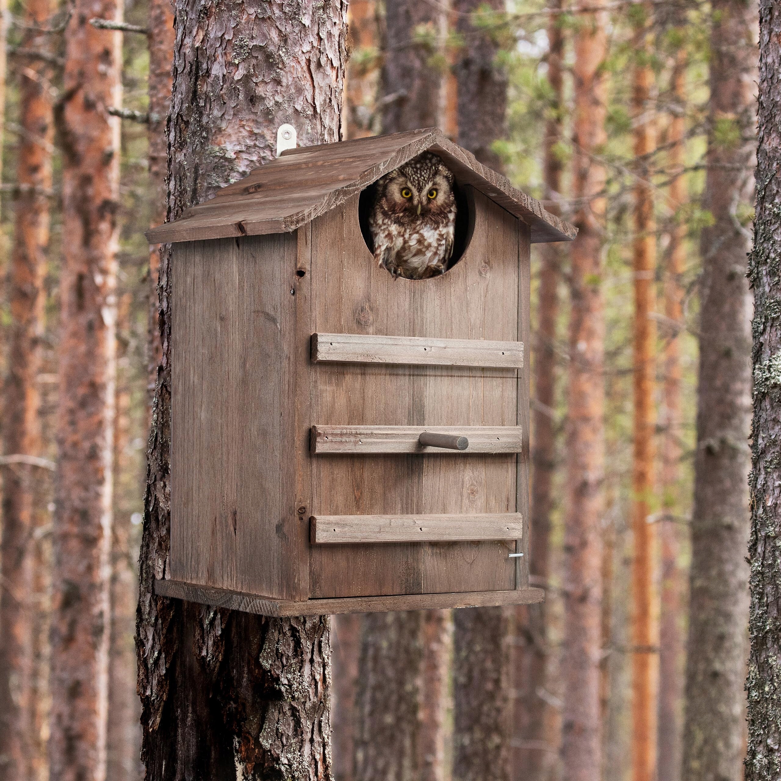 Идеально подходит для более мелких видов сов, таких как маленькие совы или волосатые совы — обеспечивает им безопасное место для гнездования и выращивания детенышей 🪶.