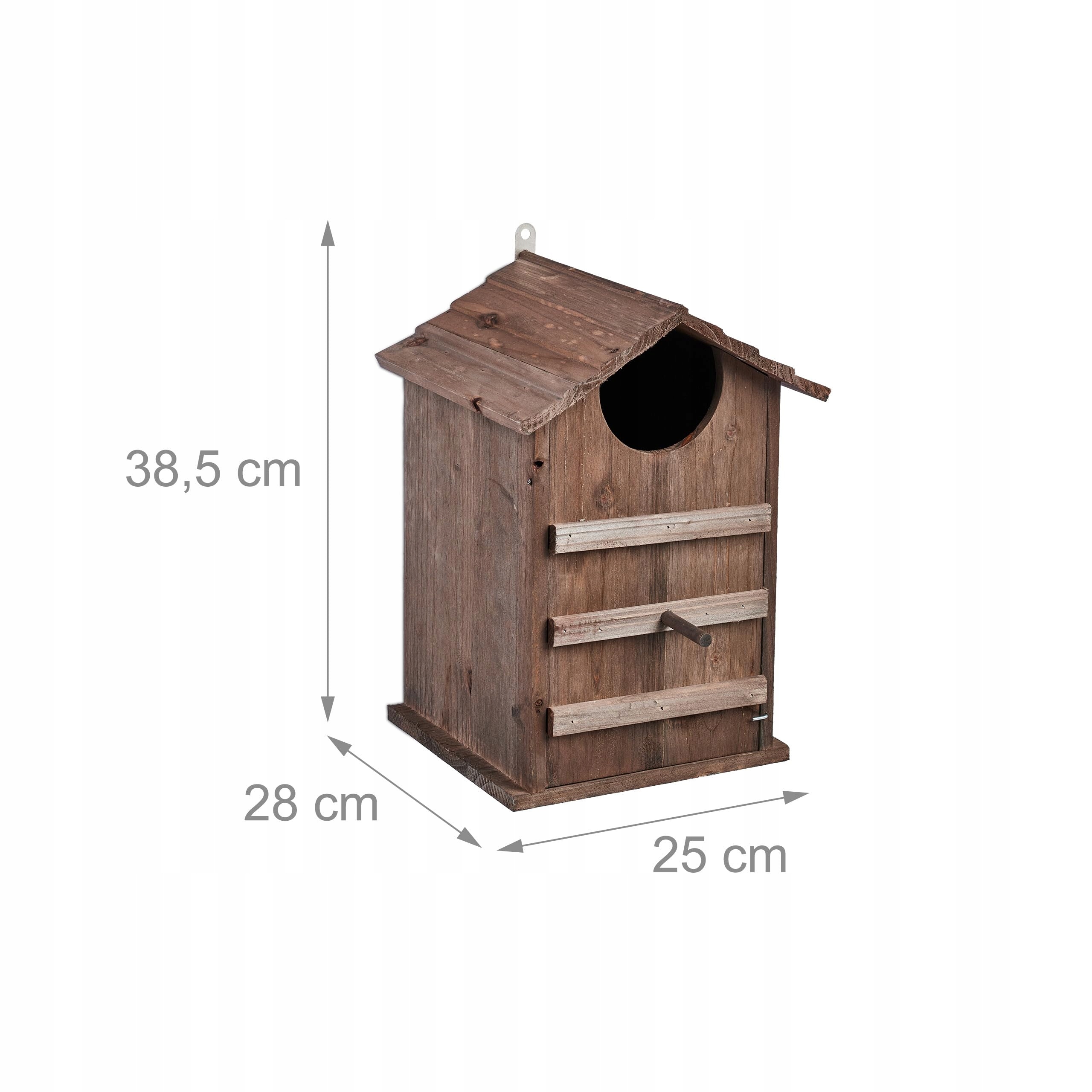 📦 Наименование товара: Скворечник Relaxdays для сов, ель, входное отверстие 9,5×9,5 см, складной, подвесной, коричневый