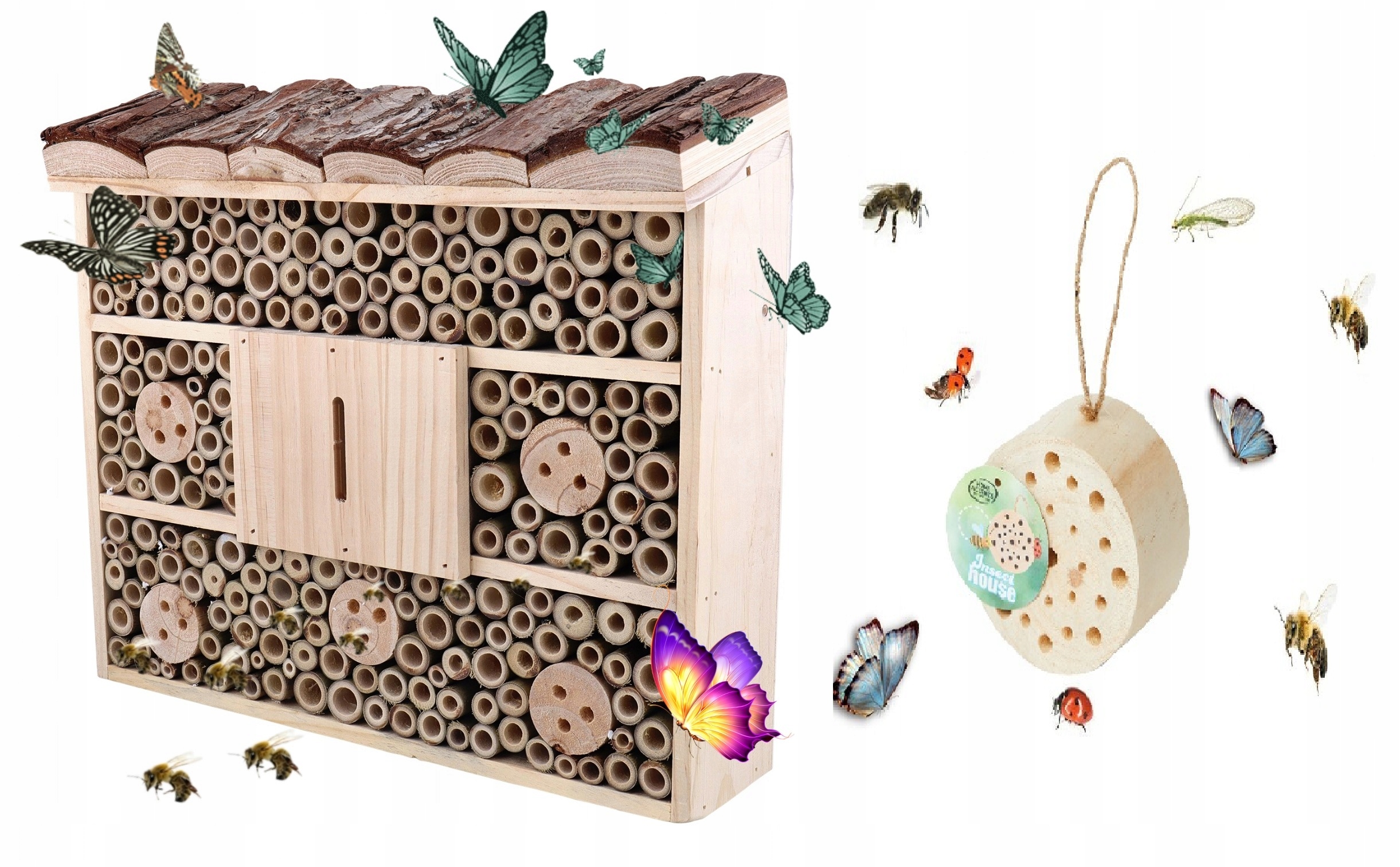 ГНІЗДОВИЙ МЕТЕЛИК ГОТЕЛЬ БУДИНОК З КОРОЮ + ДЕРЕВ'ЯНИЙ НАБІР ДЛЯ КОМАХ