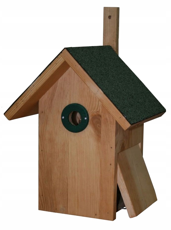 Скворечник для птиц изготовлен из массива сухой сосновой древесины, пропитан погружением прозрачным экологическим препаратом янтарного цвета.