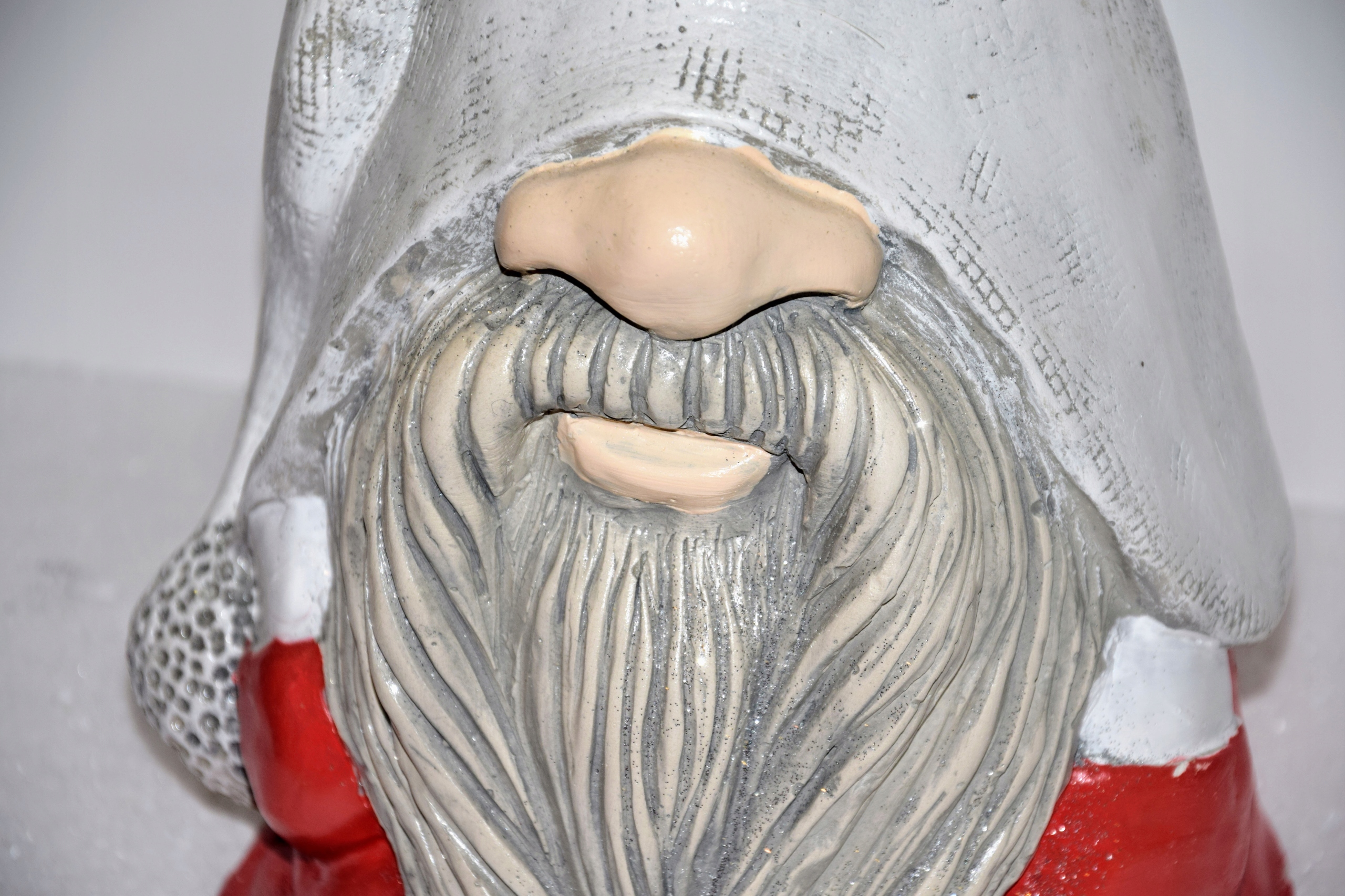Гном Люциан на этот раз в зимней версии, одетый как Санта-Клаус Клаус.