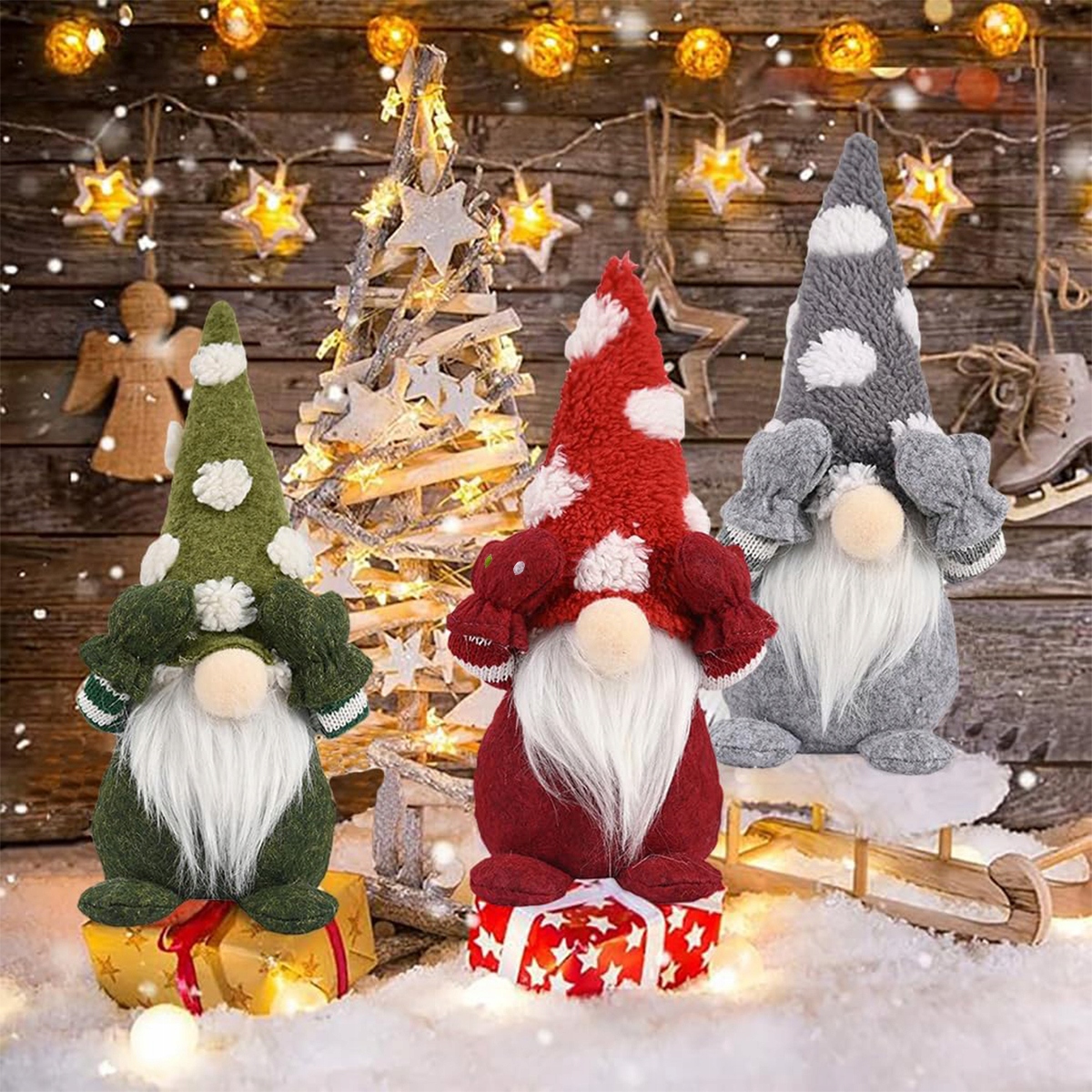 - 💫Рождественские праздничные украшения: в этот набор рождественских украшений входят 3 очаровательных плюшевых гнома (красный, зеленый и серый). Фигурки гномов можно комбинировать вместе, чтобы создать уютную рождественскую атмосферу.