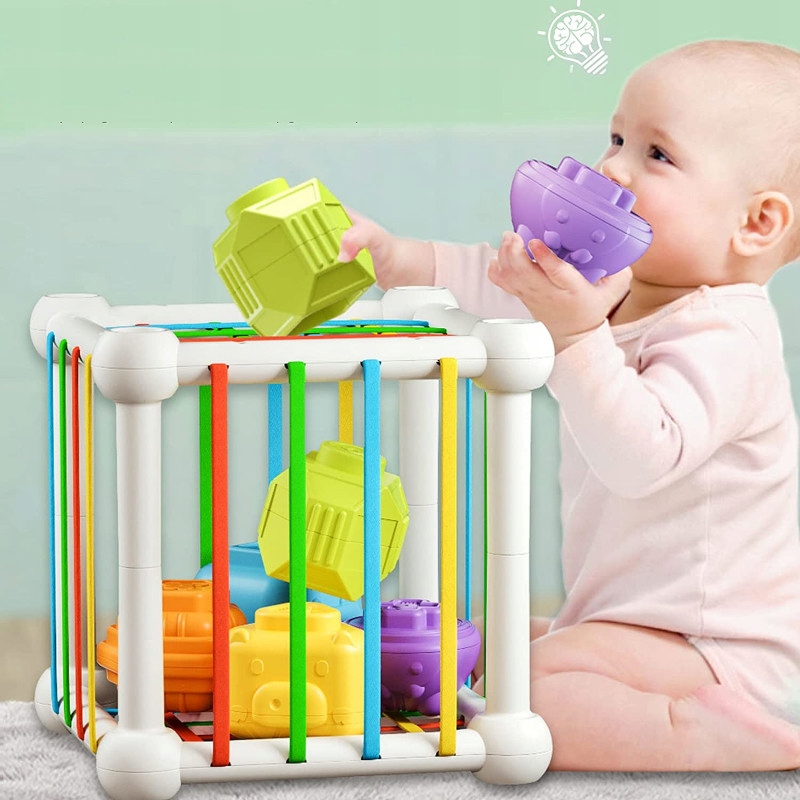 Гибкий сенсорный кубик-сортировщик — замечательная игрушка, которая стимулирует чувства наших маленьких детей. 6 гибких стенок и 6 больших блоков (погремушек) различной формы и фактуры порадуют каждого ребенка. Играя, ребенок вставляет и вынимает кубики через гибкие стенки из эластичных ниток.