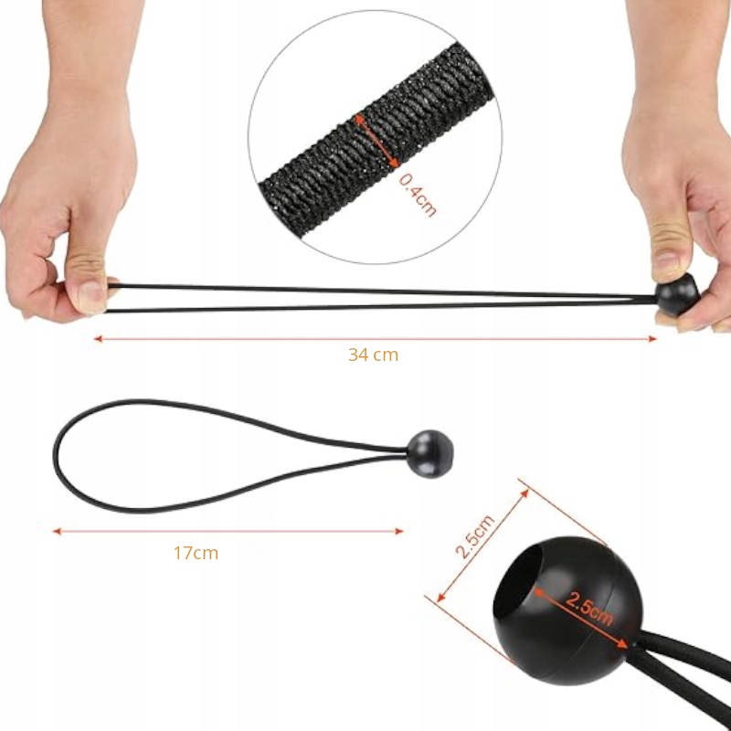 Пластиковый шарик прикреплен к эластикам. Все, что вам нужно сделать, это перетащить нижний конец резины через глаза и обернуть его вокруг мяча, и крепление будет готово. Мошенник не может быть свободен, поэтому упругая можно разрезать и адаптироваться к вашим собственным потребностям .