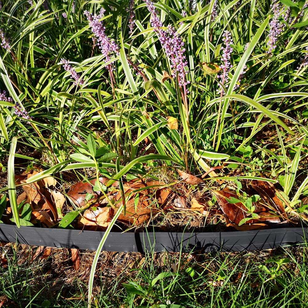 Изготовлен из гибкого и прочного материала. У них нет армирующих балок, что позволяет удобно формировать арки или плиты. Применяется при обустройстве сада для отделения газона от дорожки, обрабатываемой части сада, клумб, коры или гравийных поверхностей. Крепится к земле с помощью пластиковых анкеров.