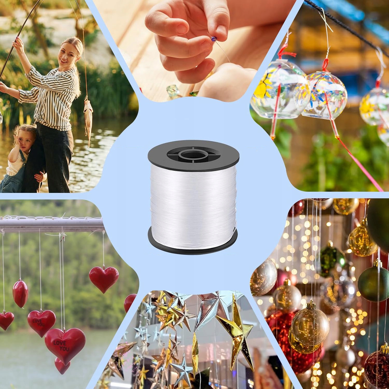 ➡ широкий спектр применений: Нейлоновая невидимая нить может использоваться для производства браслетов, ожерелий и других украшений или для висящих веревок ламп, воздушных шаров, фотолочных рамков, изображений, оконных украшений и других рождественских украшений. Подходит для всех идей для DIY, наслаждайтесь весельем.