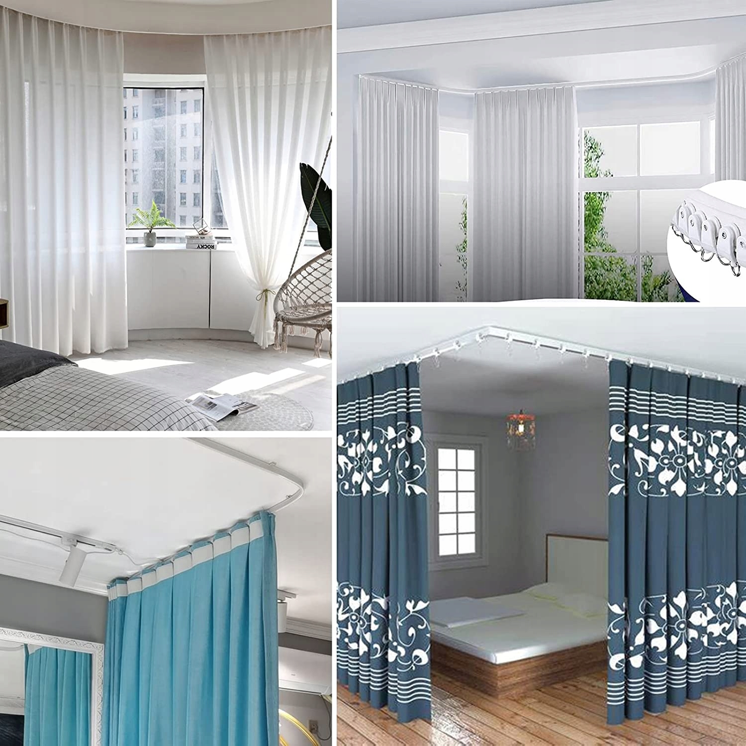 ⚙️Простая установка: аксессуары в виде направляющих колец и съемных потолочных кронштейнов разработаны, чтобы помочь вам легко и просто установить карнизы. способ, легко выполнить. Шаги установки можно описать на изображении продукта.