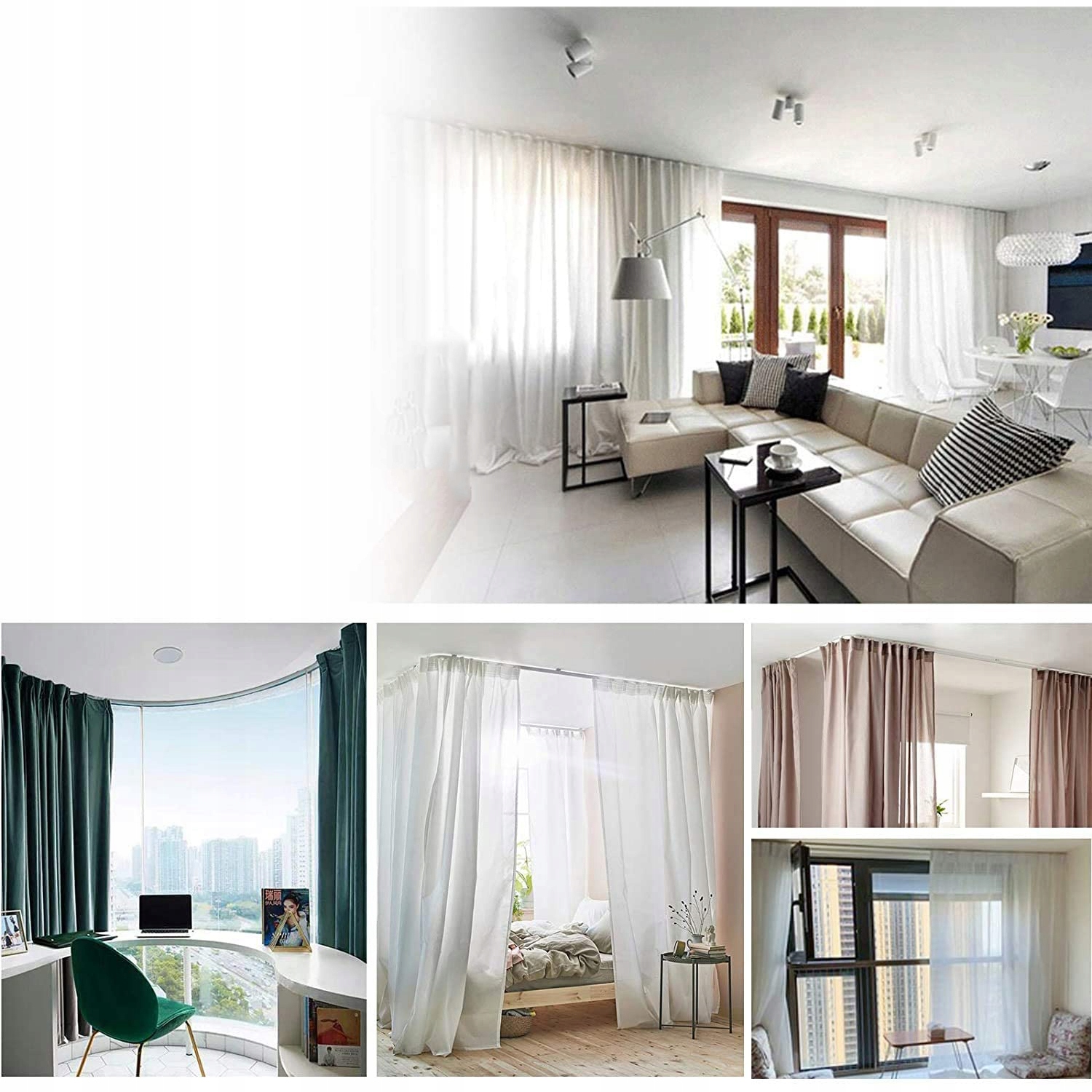 ⚙️【Прочный материал】Потолочный карниз изготовлен из ПВХ-пластика со стальными пластинами внутри, имеет гибкую конструкцию, но достаточно прочный, чтобы повесить тяжелые шторы, чтобы они не треснули и не сломались. Наши подушечки для карнизов плавно и бесшумно скользят по карнизу, а крючки для карнизов изготовлены из нержавеющей стали и имеют зигзагообразную форму, имеют сильную силу укуса и надежно фиксируют ваши шторы.