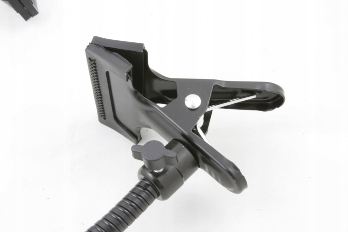 - Крепежные зажимы оснащены мощной пружиной, обеспечивающей надежное и стабильное крепление держателя и аксессуаров.
