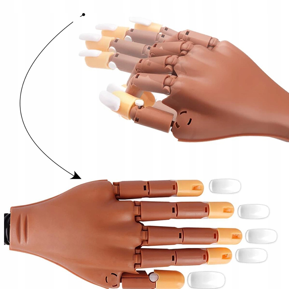 Тренировочная рука изготовлена из высококачественного материала ABS, что обеспечивает стабильность и долговечность руки. После обработки имитирует текстуру настоящих ногтей, что делает упражнения более реалистичными.