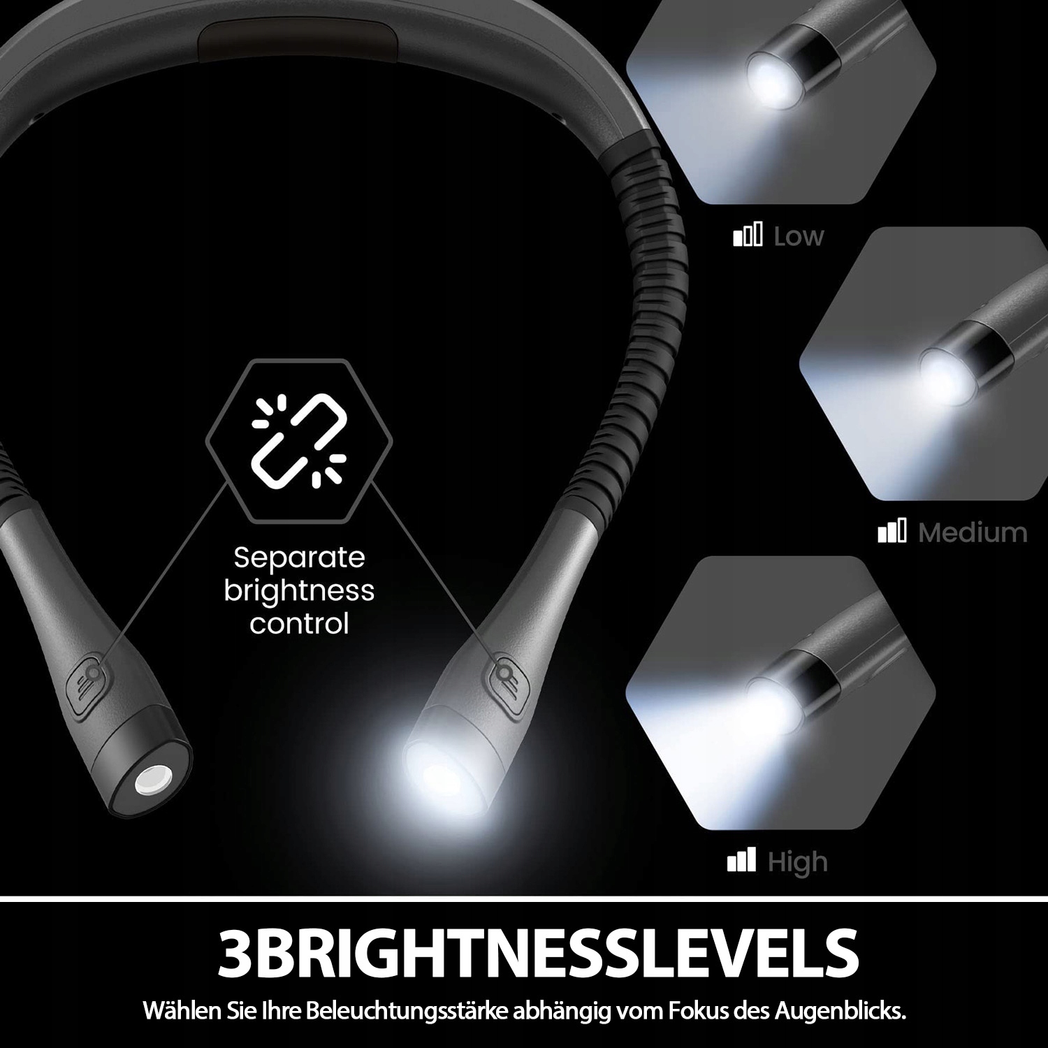 【Защита глаз и круглая форма】 Отсутствие мерцающего и синего светового фильтра с усовершенствованными светодиодными шариками. Нет больше усталости у детей и взрослых. Руки гибкие и регулируемые, поэтому вы можете установить угол, который будет наиболее удобным для вас. Эргономичный дизайн на шее означает, что вы даже не почувствуете его присутствие, потому что он легкий и удобный.