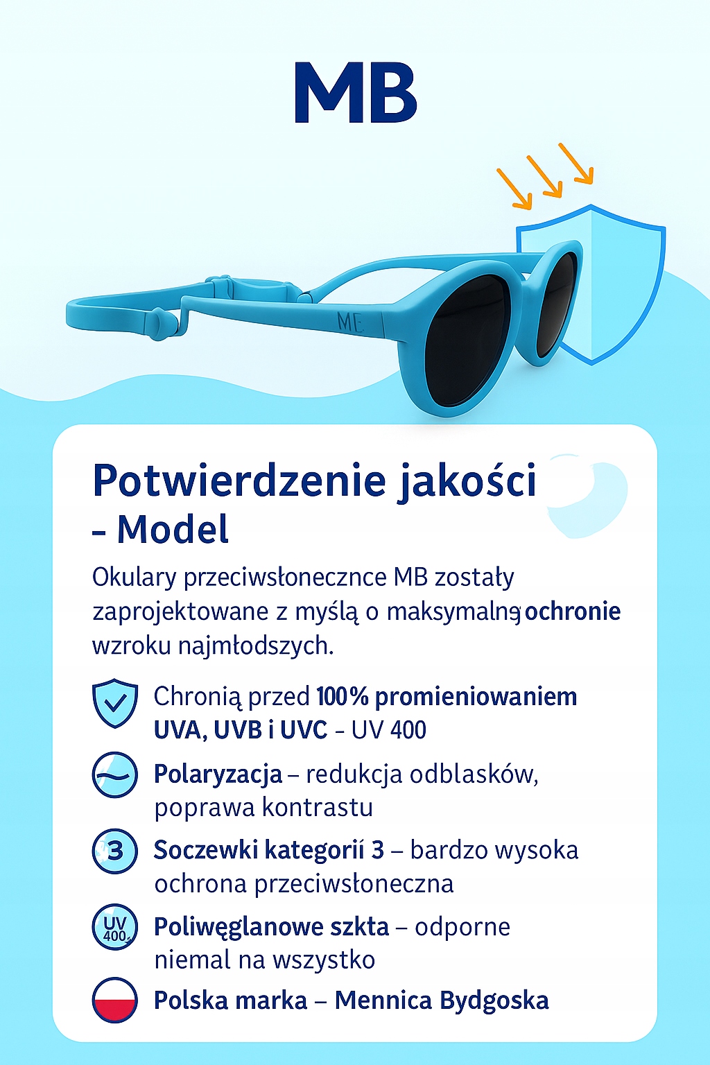 Солнцезащитные очки bydgoszcz Mint - Model lumicare ™ были разработаны специально для детей от 6 до 36 месяцев. Это идеальное решение для каждого сезона года - эффективная защита от солнца, ветра и других внешних факторов.