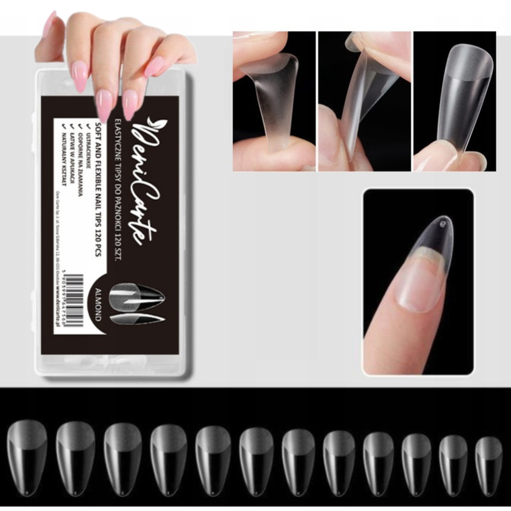 ГИБКИЕ ПРОЗРАЧНЫЕ НАСАДКИ 120 ШТ МИНДАЛЬ МИНДАЛЬ + КЛЕЙ