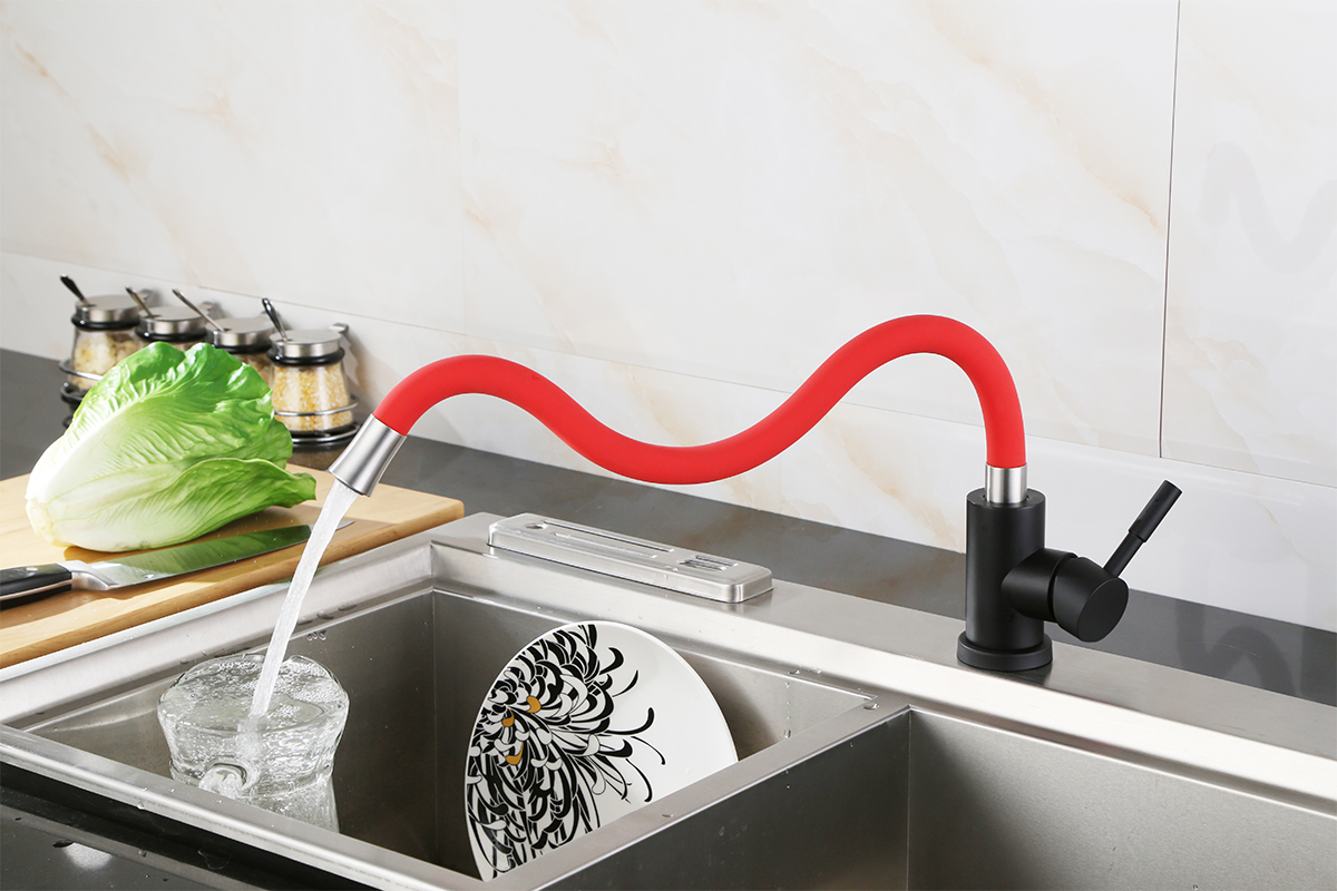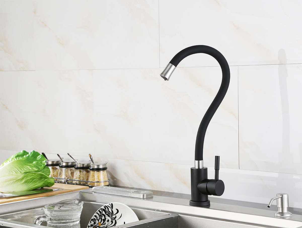ГИБКИЙ ЧЕРНЫЙ КУХОННЫЙ КРАН ГИБКИЙ НОСИК