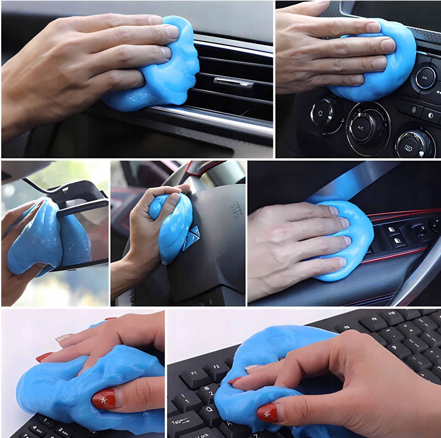 Гель -гель -гель. Мы получаем крошки и пыль между, например, клавиатура или вентиляционная решетка в машине.