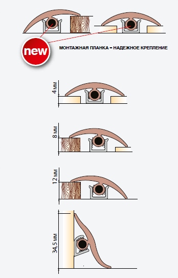 Отличная полоса для отделки арочных поверхностей с небольшим радиусом изгиба и для отделки пространства вокруг колонн. Покрывает разницу уровней. Его можно использовать на уже уложенном полу. Полоса водонепроницаема, что позволяет использовать ее даже во влажных помещениях, что является важным преимуществом при различных обустройствах. Благодаря высококачественным материалам пороговая планка гарантирует не только эстетичный внешний вид, но и долговечность.