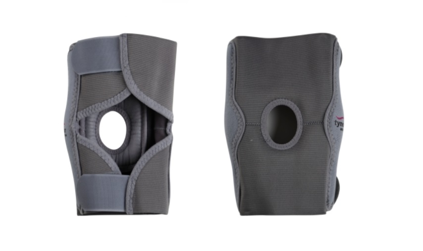 Коленный ортез с отверстием, стабилизирующим надколенник, и боковыми шинами с шарнирами - обеспечивает разгрузку сустава, правильное сжатие и свободу движений.