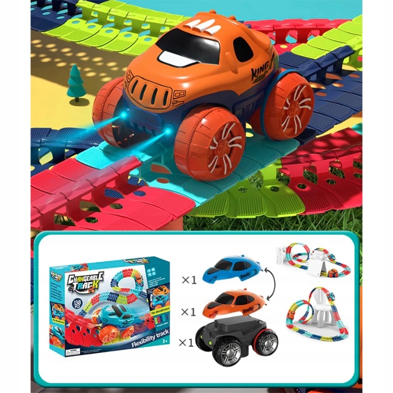 Набор модульный - купите несколько комплектов и объедините в одну большую трассу с бесчисленным количеством петель, подъемов и крутых спусков!
