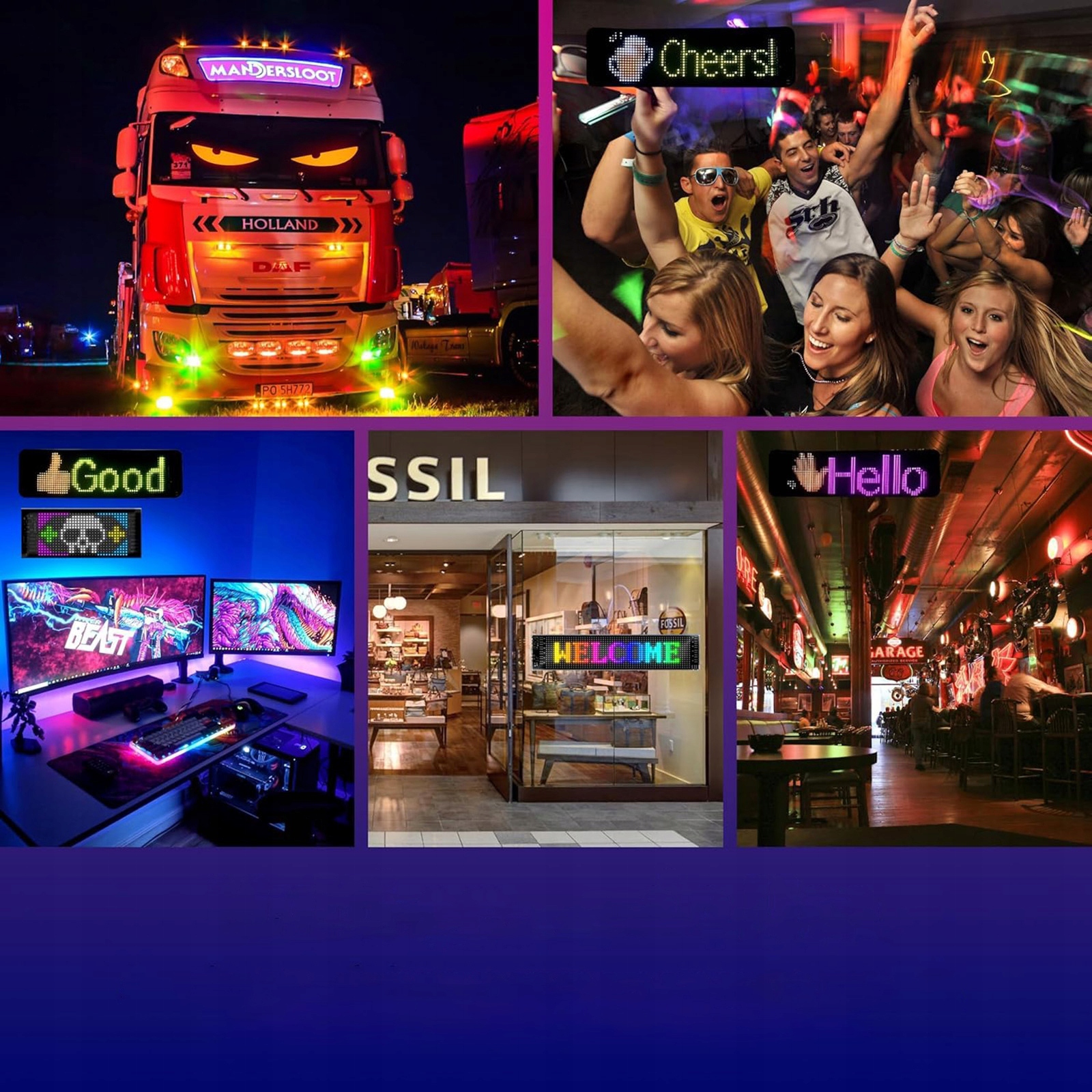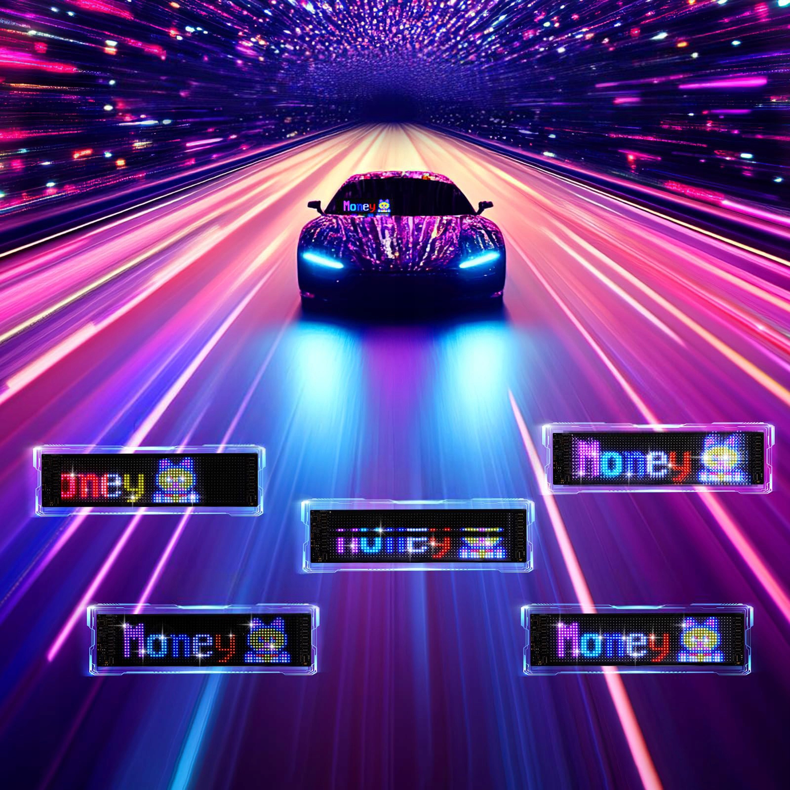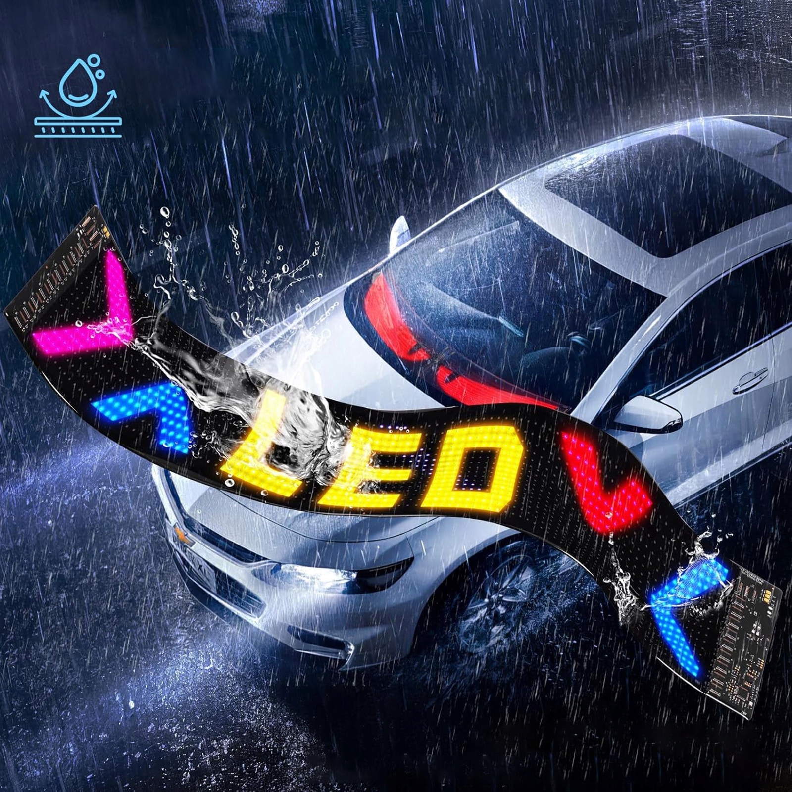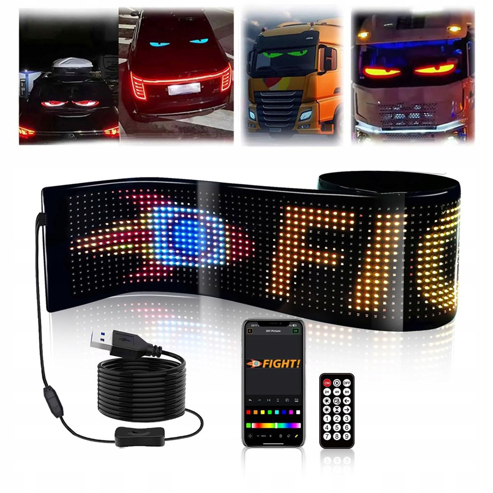 【Эластичный и прочный экран】 Красочный экран с глазной лампой для автомобильного стекла, чтобы соответствовать различным поверхностям. Программируемый гибкий светодиодный дисплей для автомобиля составляет всего 2 см, что делает его очень легким и простым в установке.