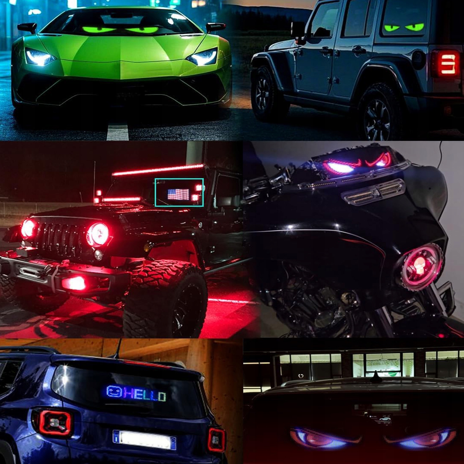【Светодиодный и красочный светодиодный световой знак】 Дьявол глаз для автомобилей использует 1536 полных бусинок RGB. Этот высококачественный светодиодный знак отображается очень ярким и потребляет меньше энергии.