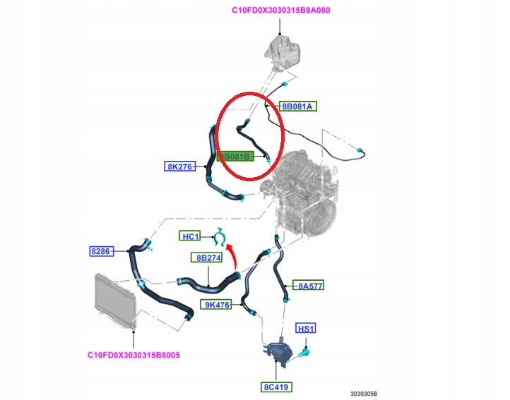 ГИБКИЙ ВОДЯНОЙ ШЛАНГ FIESTA 12- B-MAX 12- 1.0 _ 1838698 _ C1B1-8C012-BE