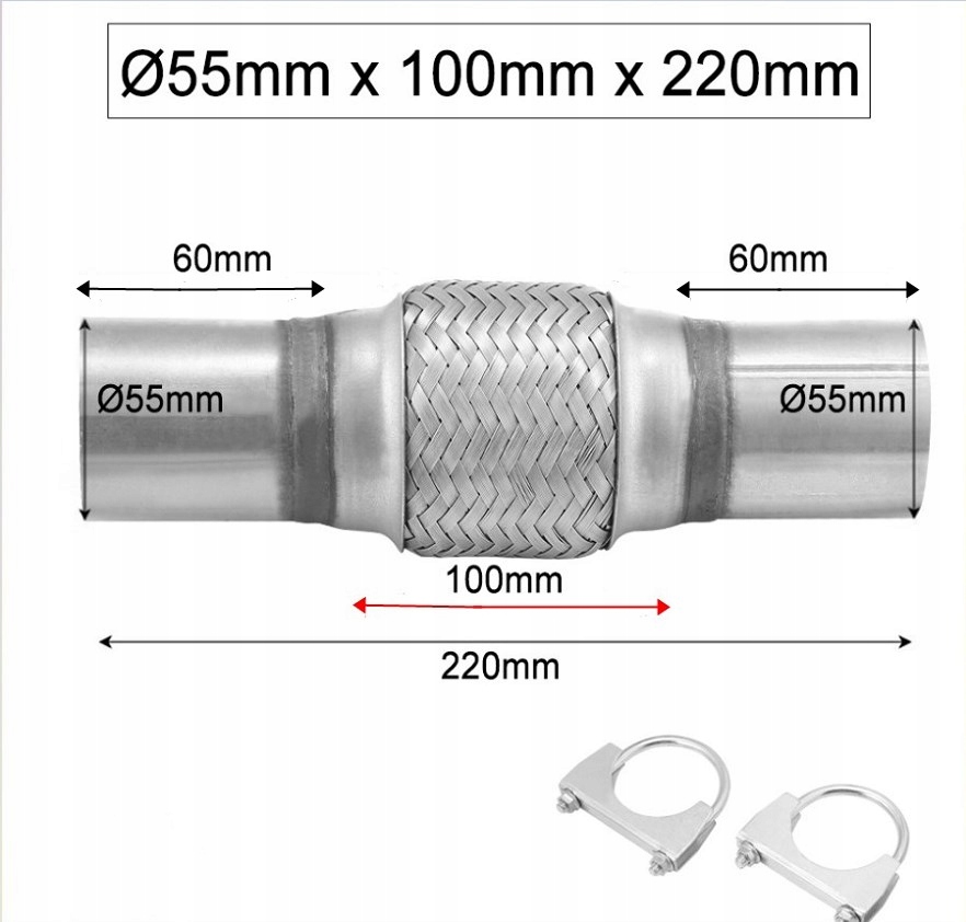 ГЛУШИТЕЛЬ ГЛУШИТЕЛЬ ГИБКИЙ СОЕДИНИТЕЛЬ Ø 55 мм x 220 мм ДЛЯ ЗАЖИМОВ