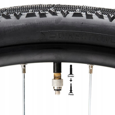 Практично: в комплект входит адаптер для преобразования клапана Presta (маленький клапан) в клапан Шредера (большой клапан). Обратите внимание, что изделие не предназначено для установки на компрессор.