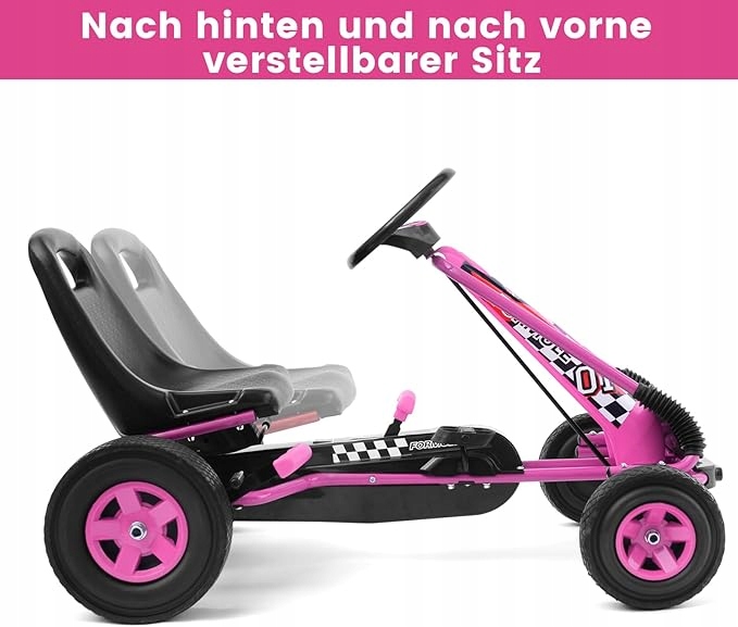 Карт можно свободно передвигать вперед и назад. Прочная конструкция, нескользящие педали и гибкое рулевое колесо позволяют быстро и точно маневрировать - как в настоящем автомобиле.