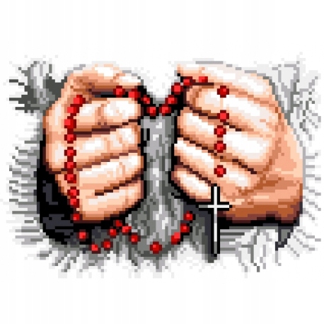 Красивое изображение для вышивки крестом с руками, держащими красные четки. Помимо этого энергичного акцента, холст бело-серый с характерными почерками. Вышивка рекомендуется в качестве украшения помещения любого типа, в том числе и гостиной.
