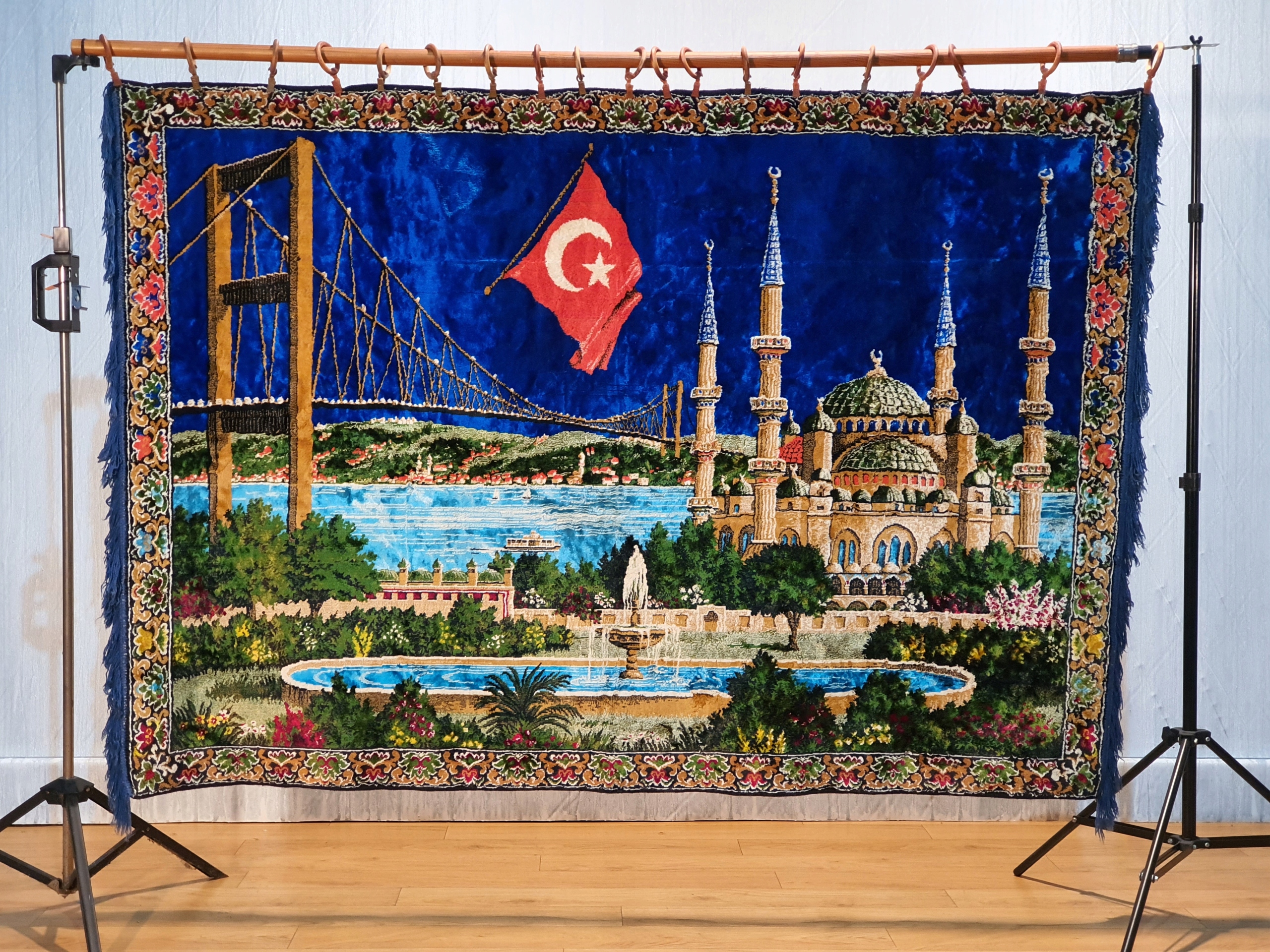 Турецкий гобелен из шелкового кашемира, вероятно оригинал, 1980-е годы