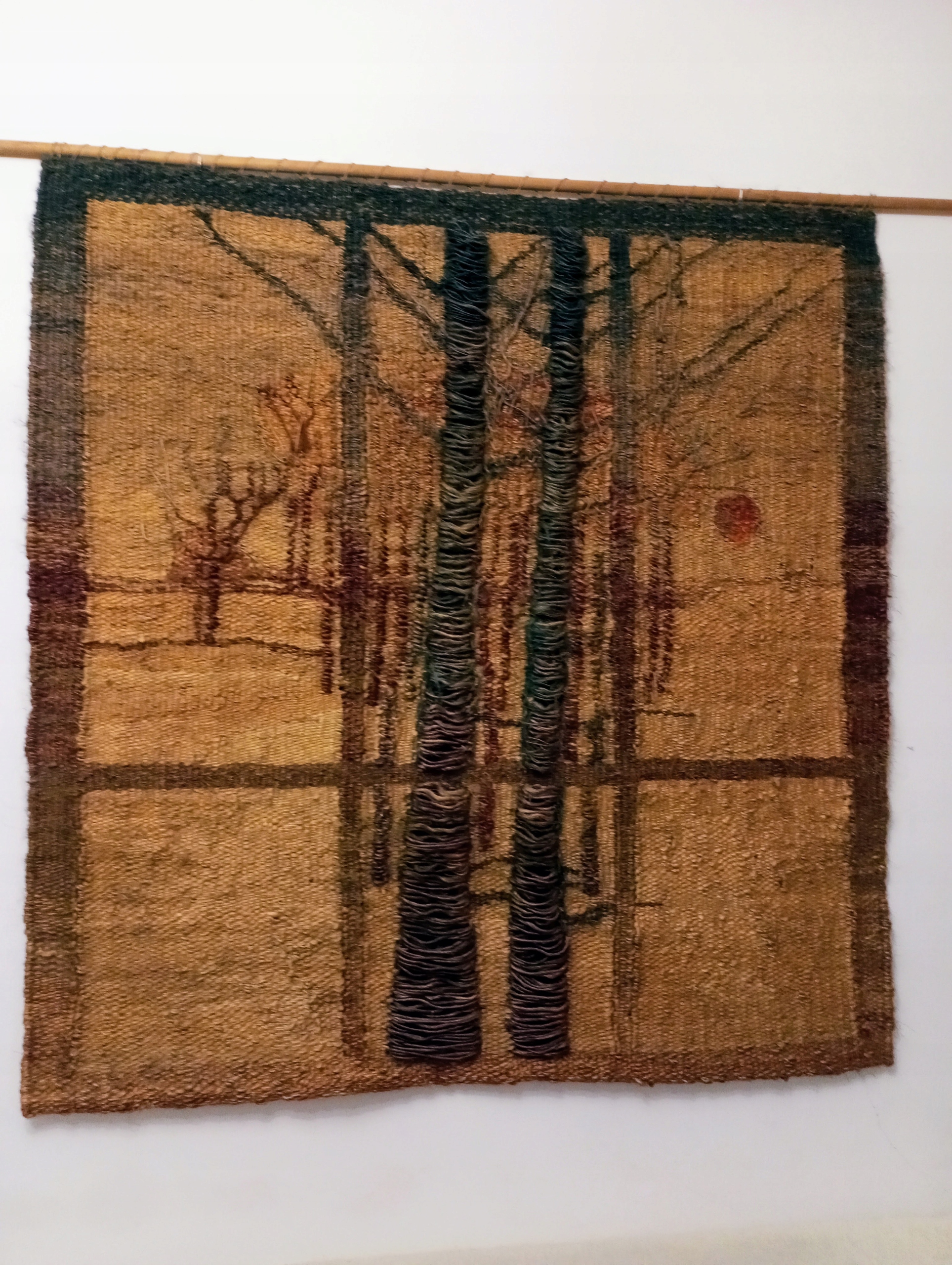 Gobelin "Las - zachód słońca" sizal ok.120 x 150 cm lata 70.
