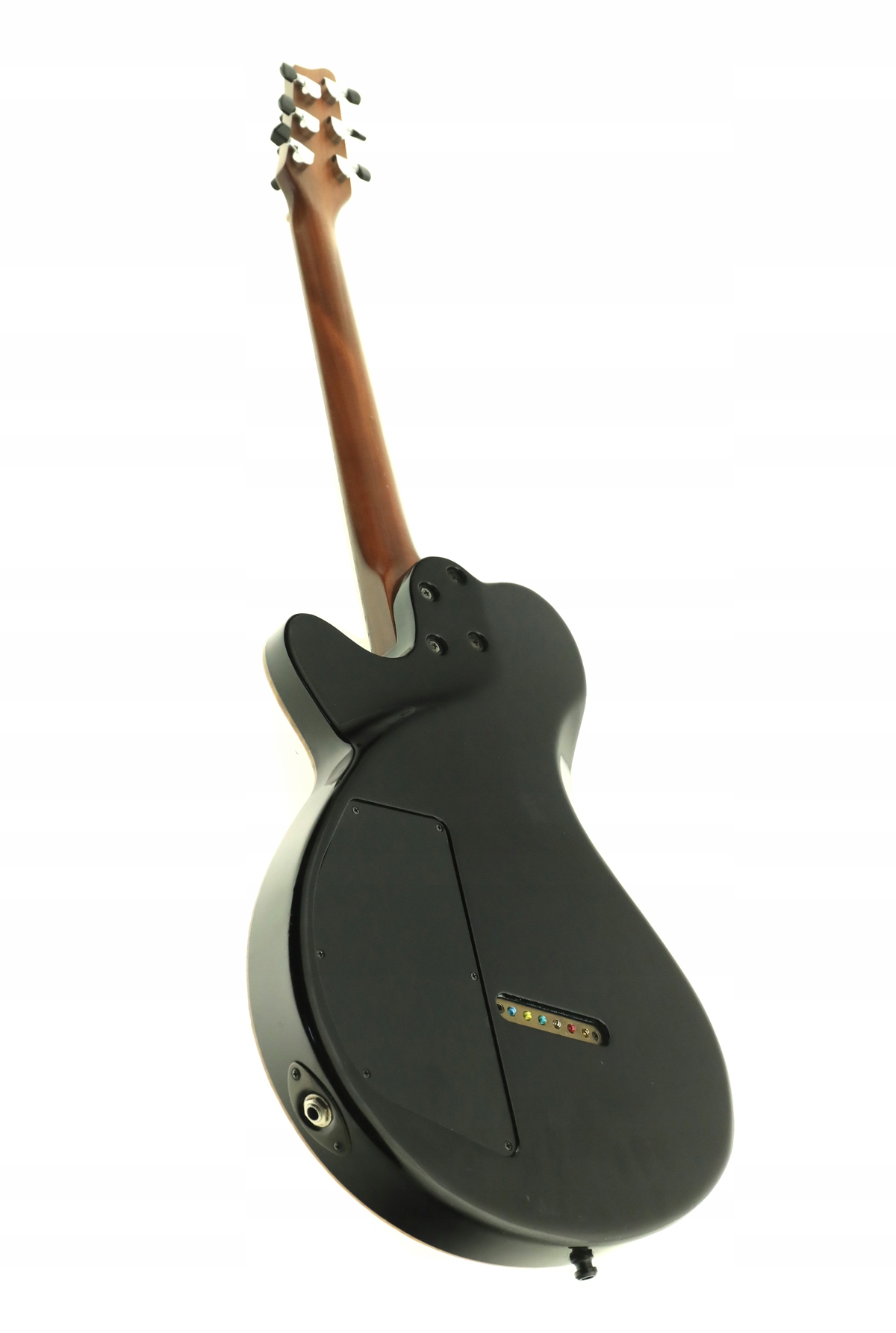 Верх Гитара изготовлена из клена, гриф изготовлен из из черного дерева, а накладка грифа - из палисандра.