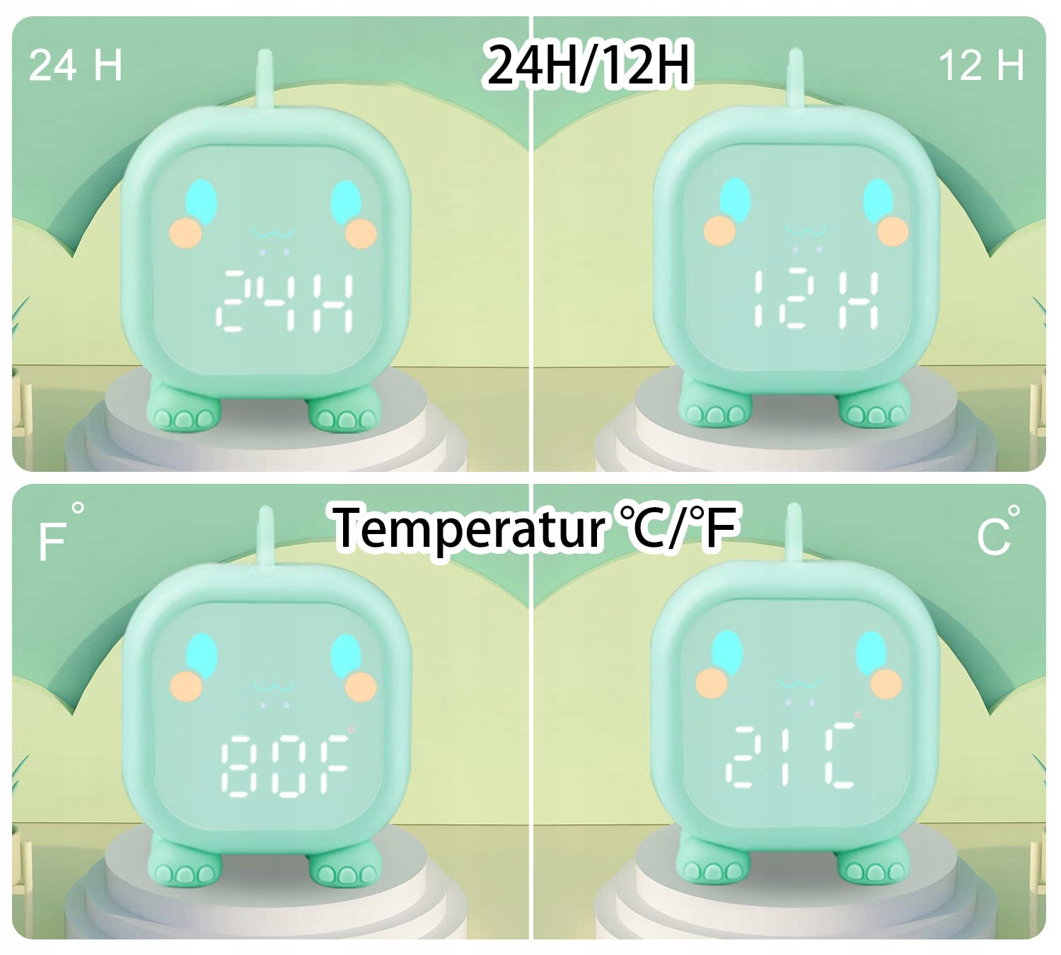 💝 Цифровой будильник для детей, будильник динозавр с ночником, функцией повтора, таймером, температурой, тренажером для сна для детей, детский будильник, спальня, мальчики и девочки (зеленый).