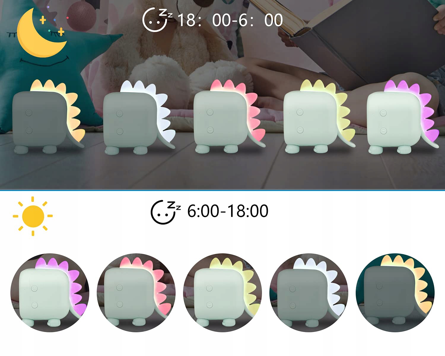 💝 D b>С помощью милого тренажера для сна в виде динозавра, созданного специально для детей, дети смогут различать, когда ложиться спать, а когда вставать, чтобы привыкнуть к графику, лучше спать и лучше просыпаться.