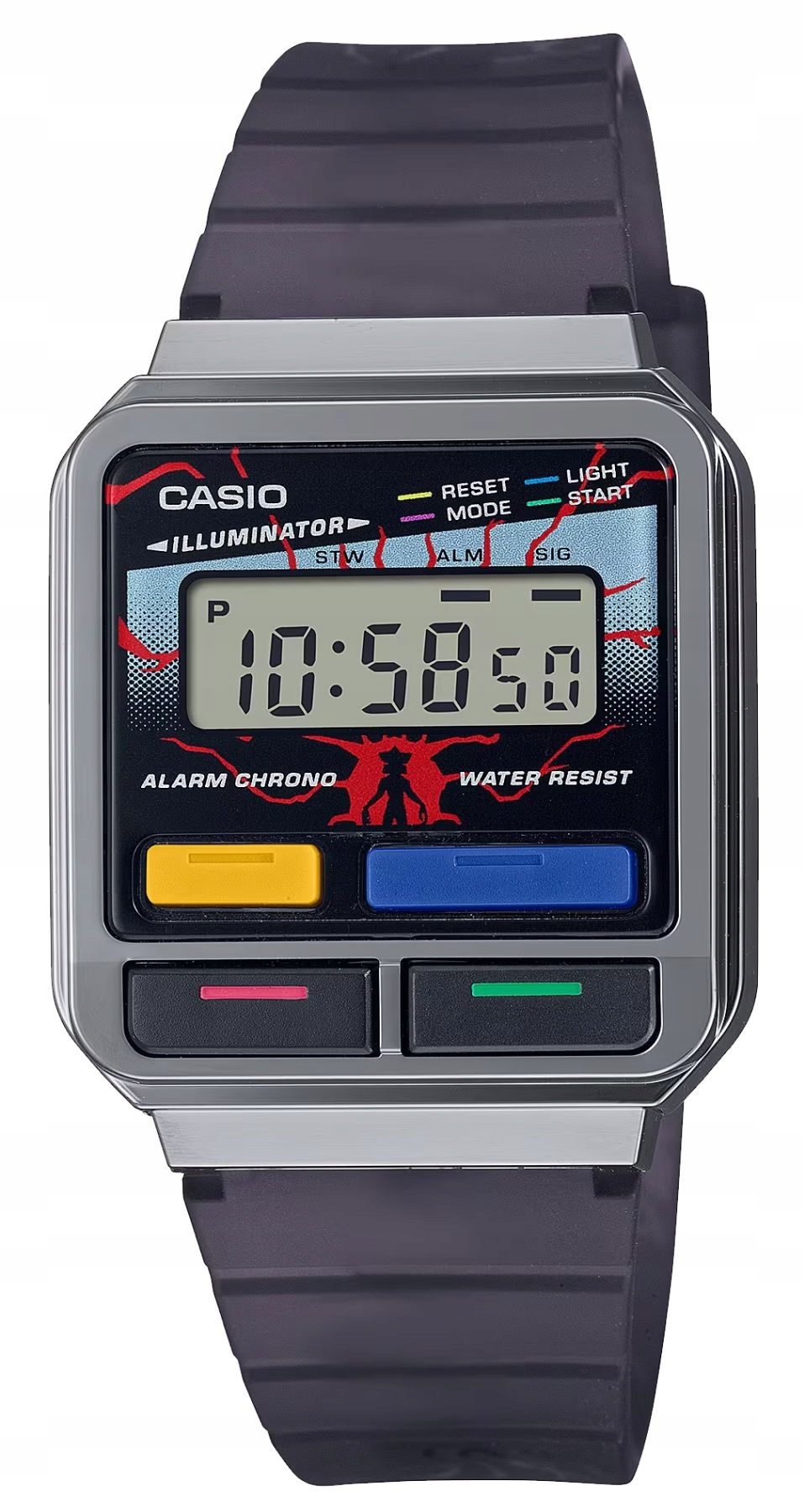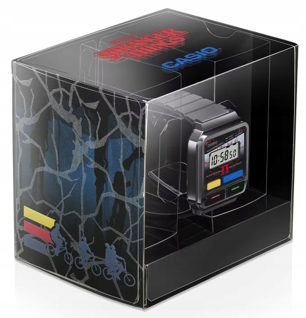 Уникальная модель Casio A120WEST-1AER создана в результате сотрудничества японского часового бренда и международной потоковой платформы Netflix. Сочетание иконы 1980-х годов — часов Casio Vintage и культового сериала Netflix — Stranger Things, действие которого происходит в вышеупомянутое десятилетие.